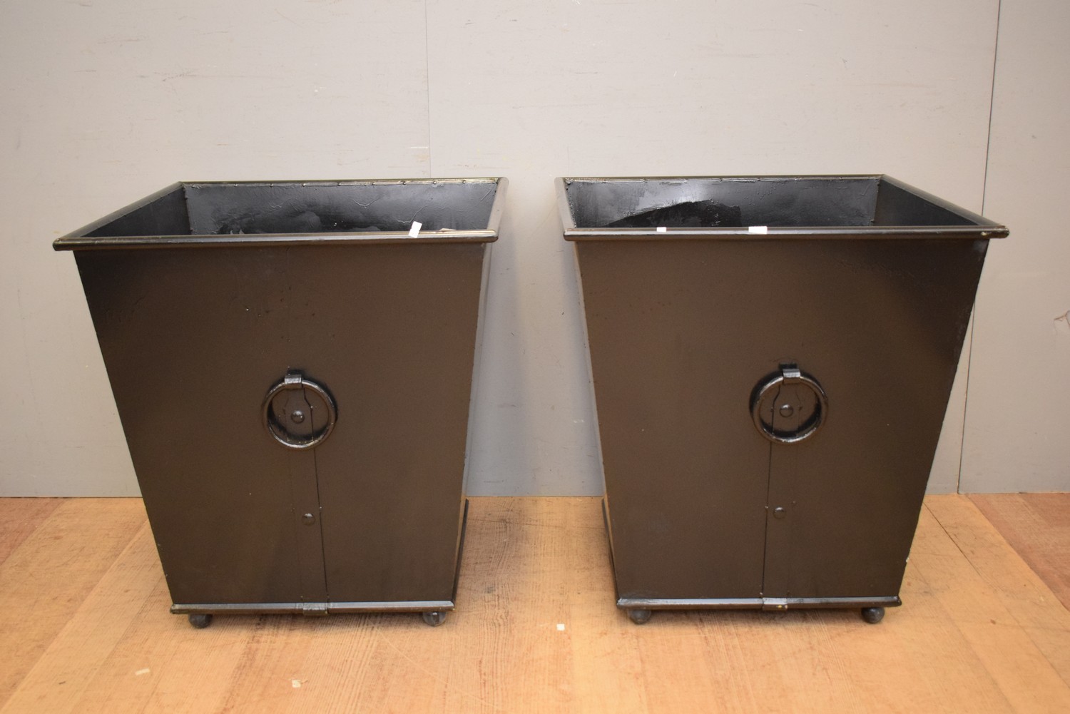 A PAIR OF LARGE METAL TREE PLANTERS IN MIRROR BLACK FINISH (69H X 66W X 66D CM) (LARGE ITEM)