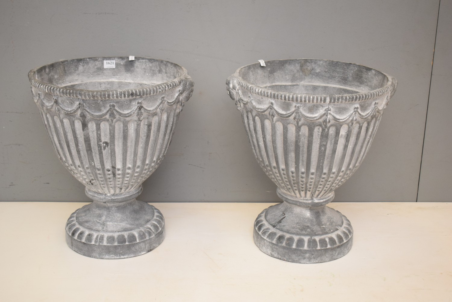 A PAIR OF CAST IRON CLASSICAL URNS (38H X 37D CM) (MEDIUM ITEM)