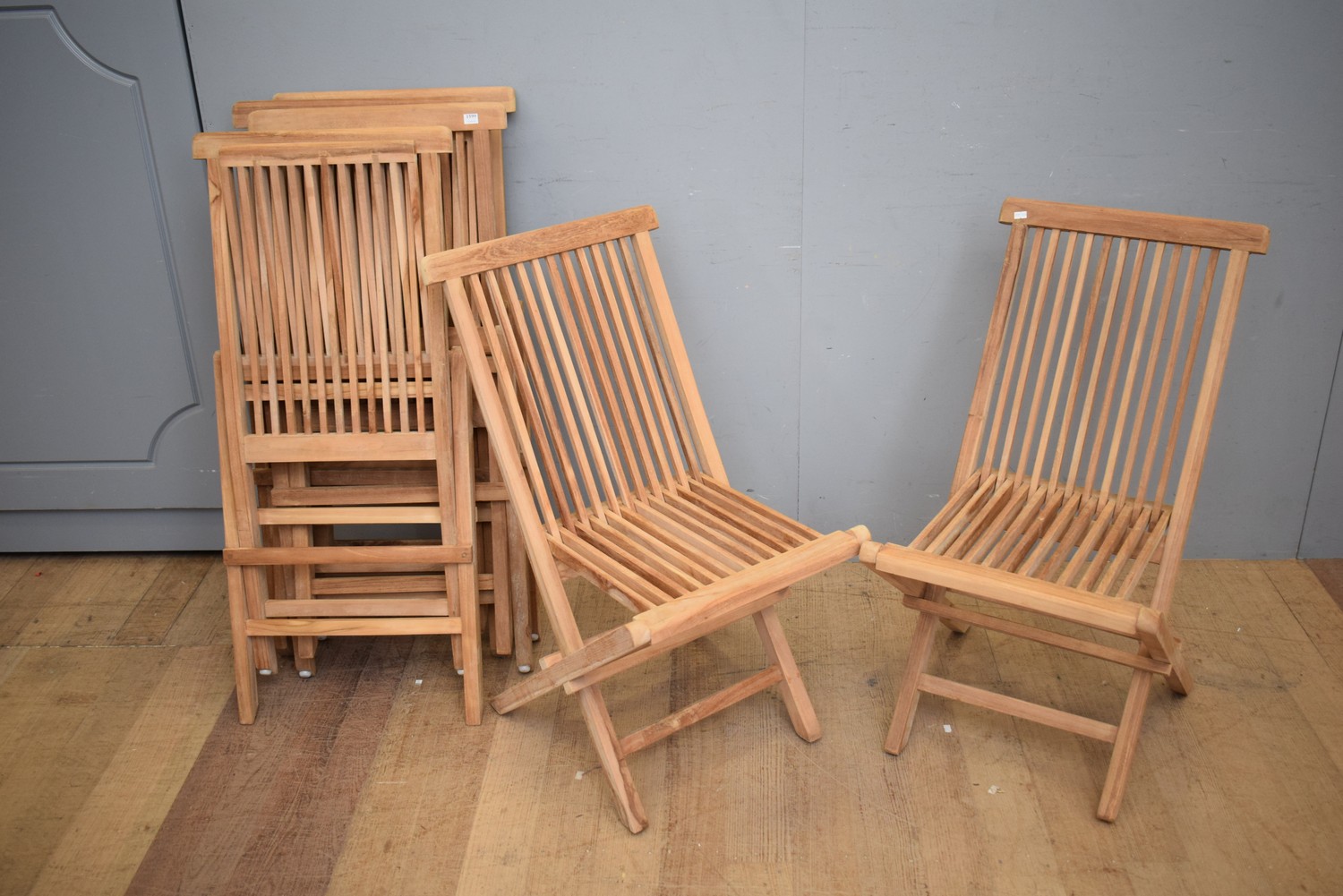 SIX TEAK OUTDOOR CHAIRS (89H X 47W X 70D CM) (LARGE ITEM)