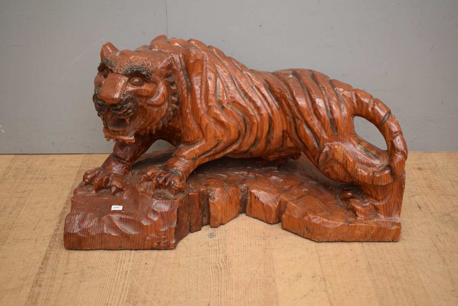 A 1940S CARVED WOODEN PROWLING TIGER FIGURE (45H X 80W X 45D CM) (PLEASE NOTE THIS HEAVY ITEM MUST BE REMOVED BY CARRIERS AT THE CUSTOMER'S EXPENSE. LEONARD JOEL STAFF CANNOT ASSIST CARRYING THIS ITEM) (DELIVERY SIZE: X-LARGE)