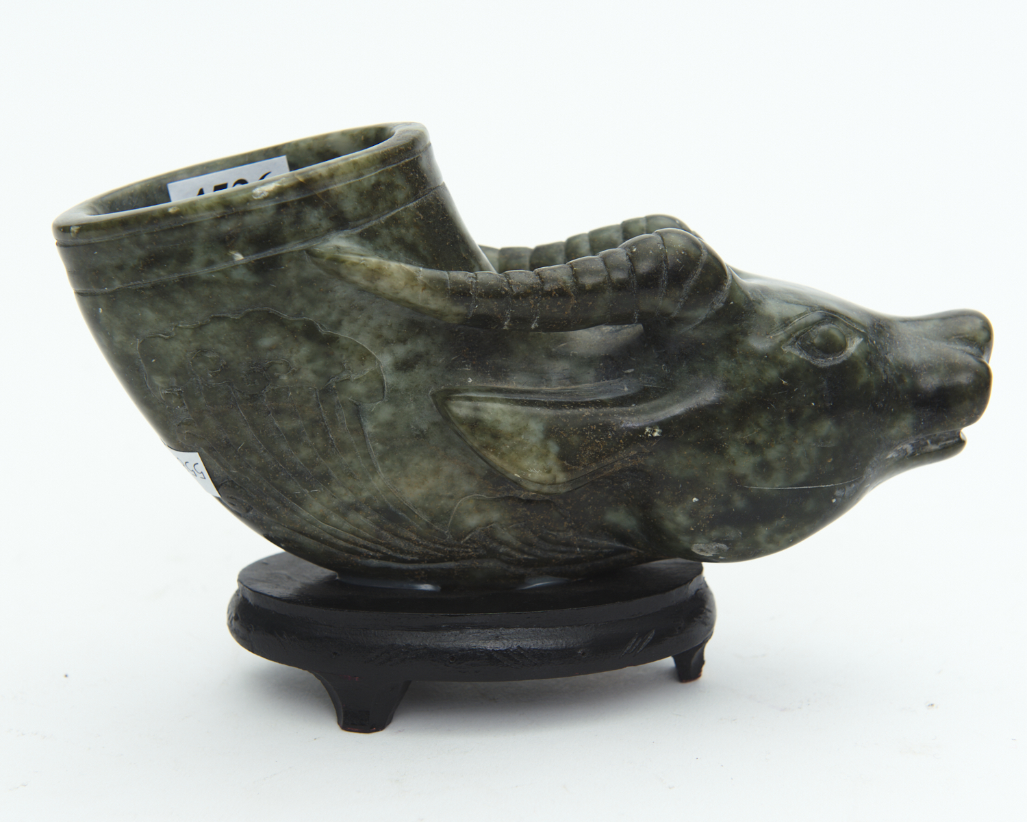 A CHINESE JADEITE LIBATION CUP ON STAND H.12CM W.18CM, LEONARD JOEL DELIVERY SIZE: SMALL