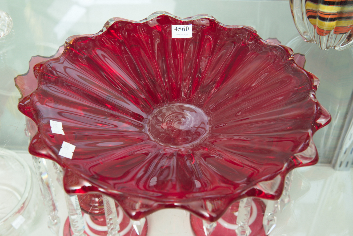 AN ITALIAN FLUTED RED GLASS BOWL WITH REMNANT OF ORIGINAL STICKER TO BASE DIA.34CM, LEONARD JOEL DELIVERY SIZE: SMALL