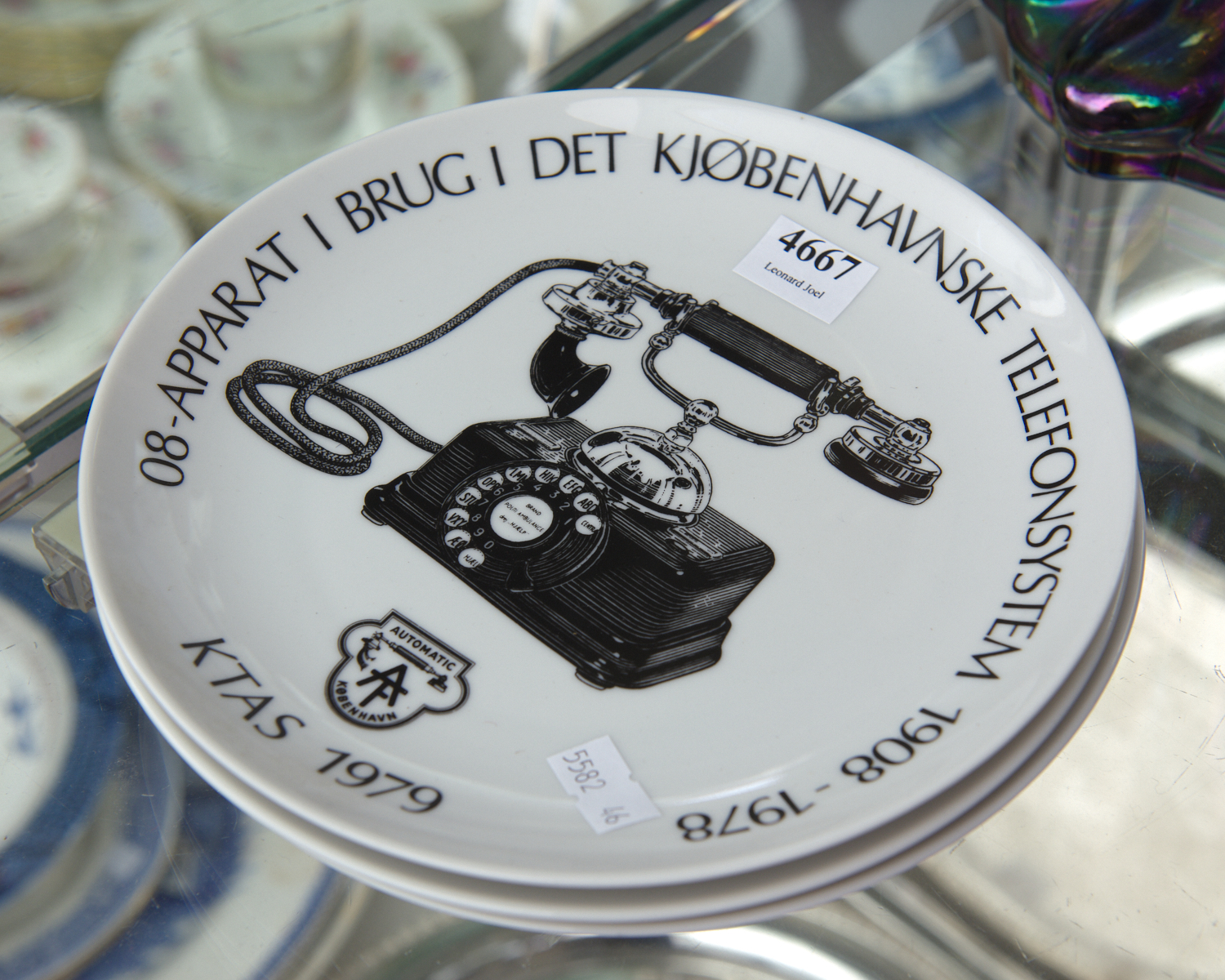 A SET OF THREE DANISH CERAMIC TELEPHONE DECORATED PLATES DIA.20CM, LEONARD JOEL DELIVERY SIZE: SMALL