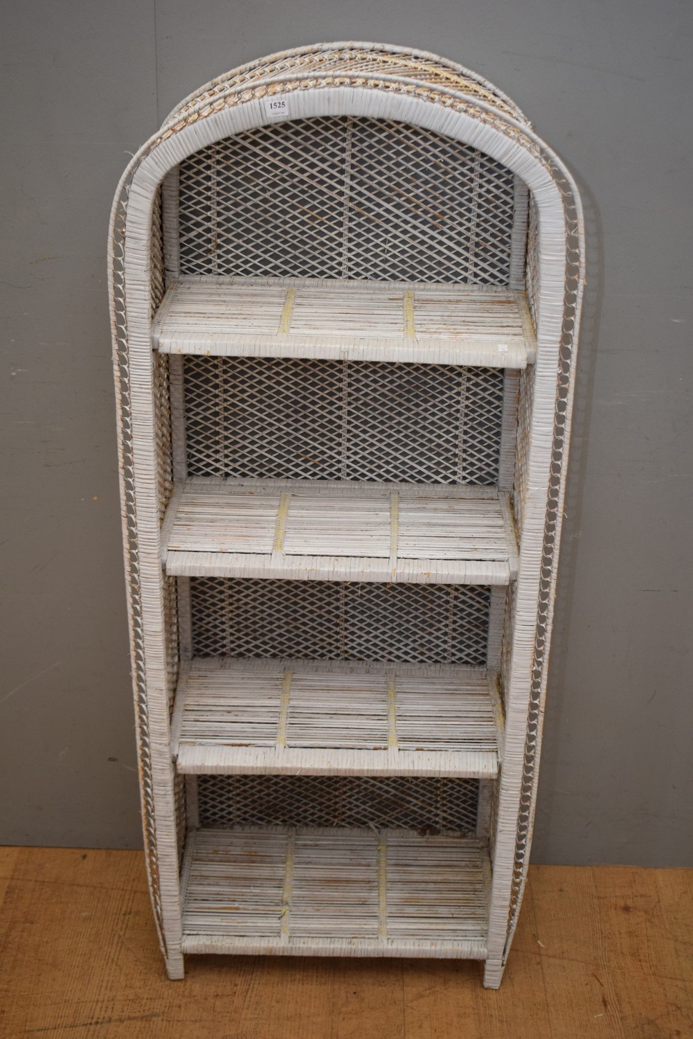 A FOUR TIER WICKER PAINTED BOOKSHELF (134H X 58W X 31D CM) (A/F) ( LARGE ITEM)