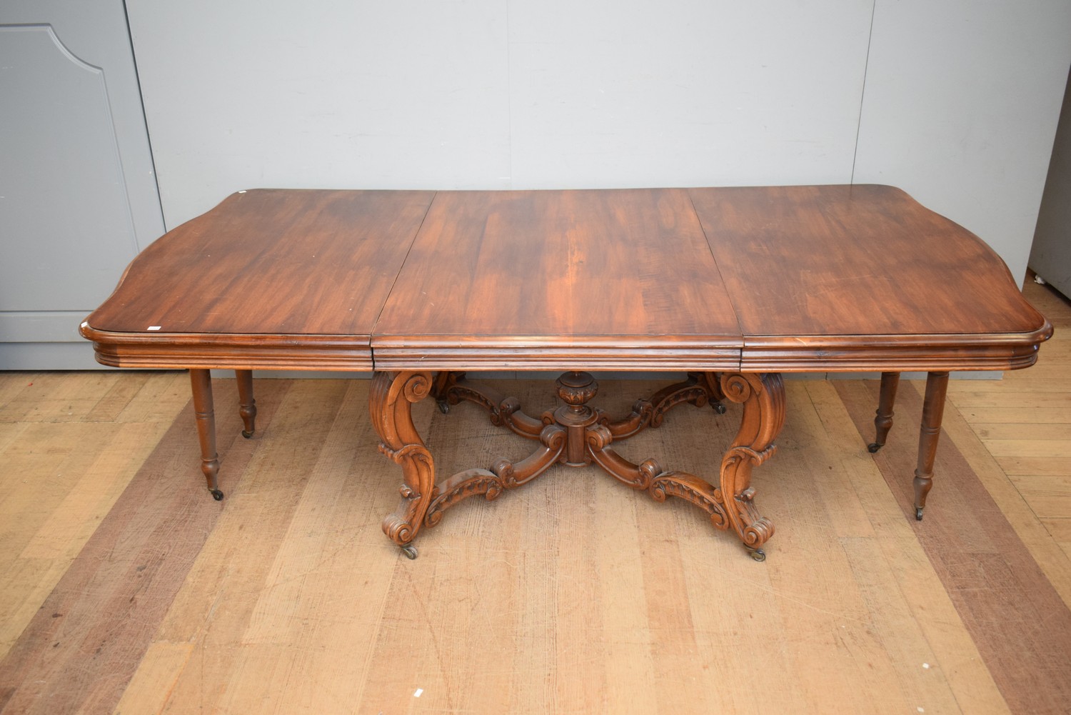 A FRENCH WALNUT 19TH CENTURY LOUIS XV STYLE EXTENSION DINING TABLE WITH ORIGINAL LEAF (A/F) (74H X 228W X 121D CM) (X-LARGE ITEM)