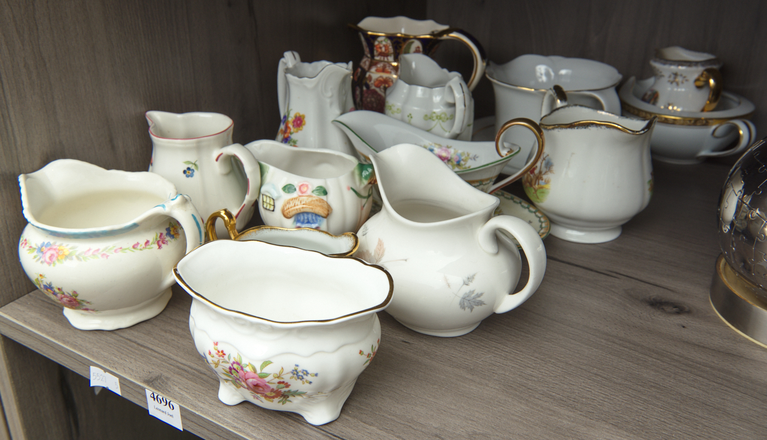A COLLECTION OF PORCELAIN CREAMERS AND SAUCE BOATS INCLUDING ROYAL DOULTON AND HAMMERSLEY