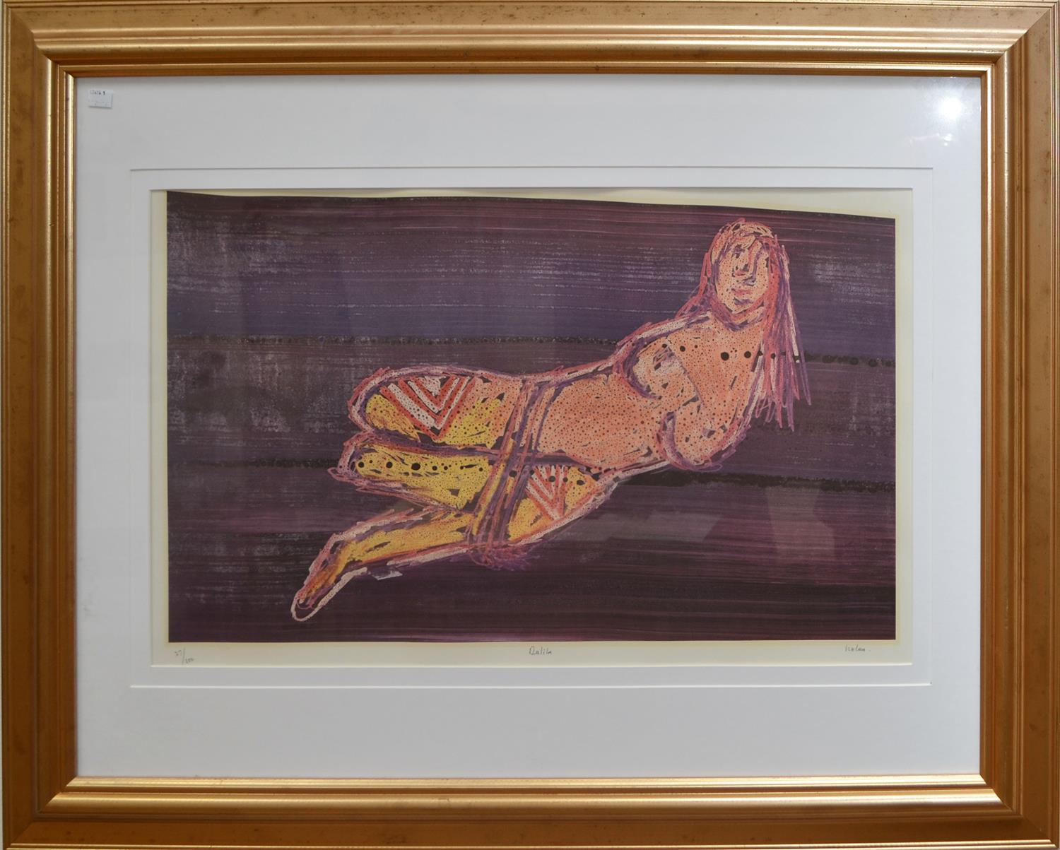 SIDNEY NOLAN, DALILA, SCREENPRINT 27/100, 43 X 71CM, FRAME SIZE: 84 X 104CM, CONDITION: WORK HAS SLIPPED IN FRAME, COCKLING EVIDENT, BROWN/YELLOW STAIN AROUND EDGE OF IMAGE, LEONARD JOEL DELIVERY SIZE: LARGE