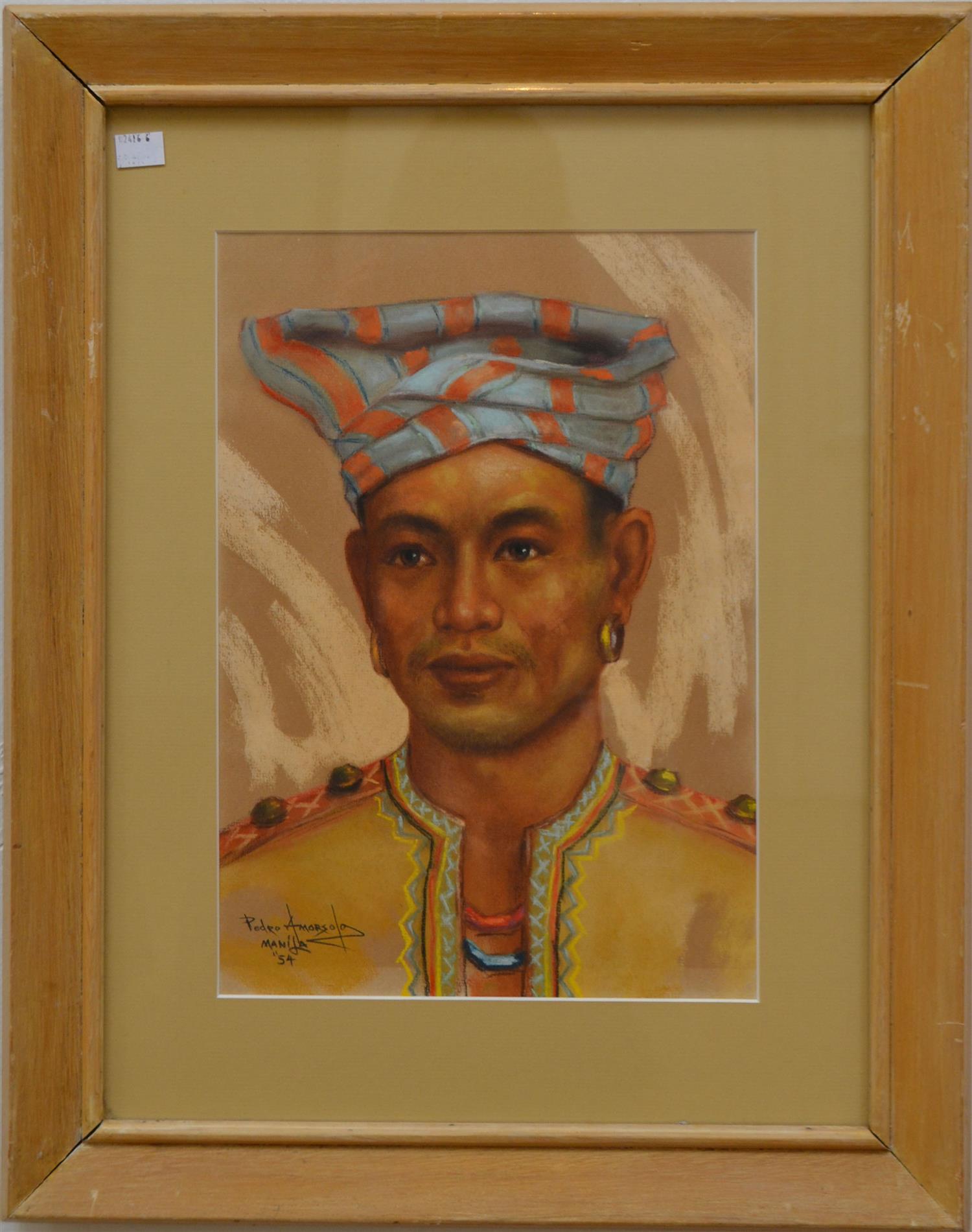 PEDRO AMORSOLO, PAIR OF PORTRAITS 1954, PASTEL ON PAPER, 37 X 27CM (EACH), FRAME SIZE: 58 X 46CM EACH, CONDITION: VERY GOOD, SOME MARKS TO THE FRAME. LEONARD JOEL DELIVERY SIZE: MEDIUM