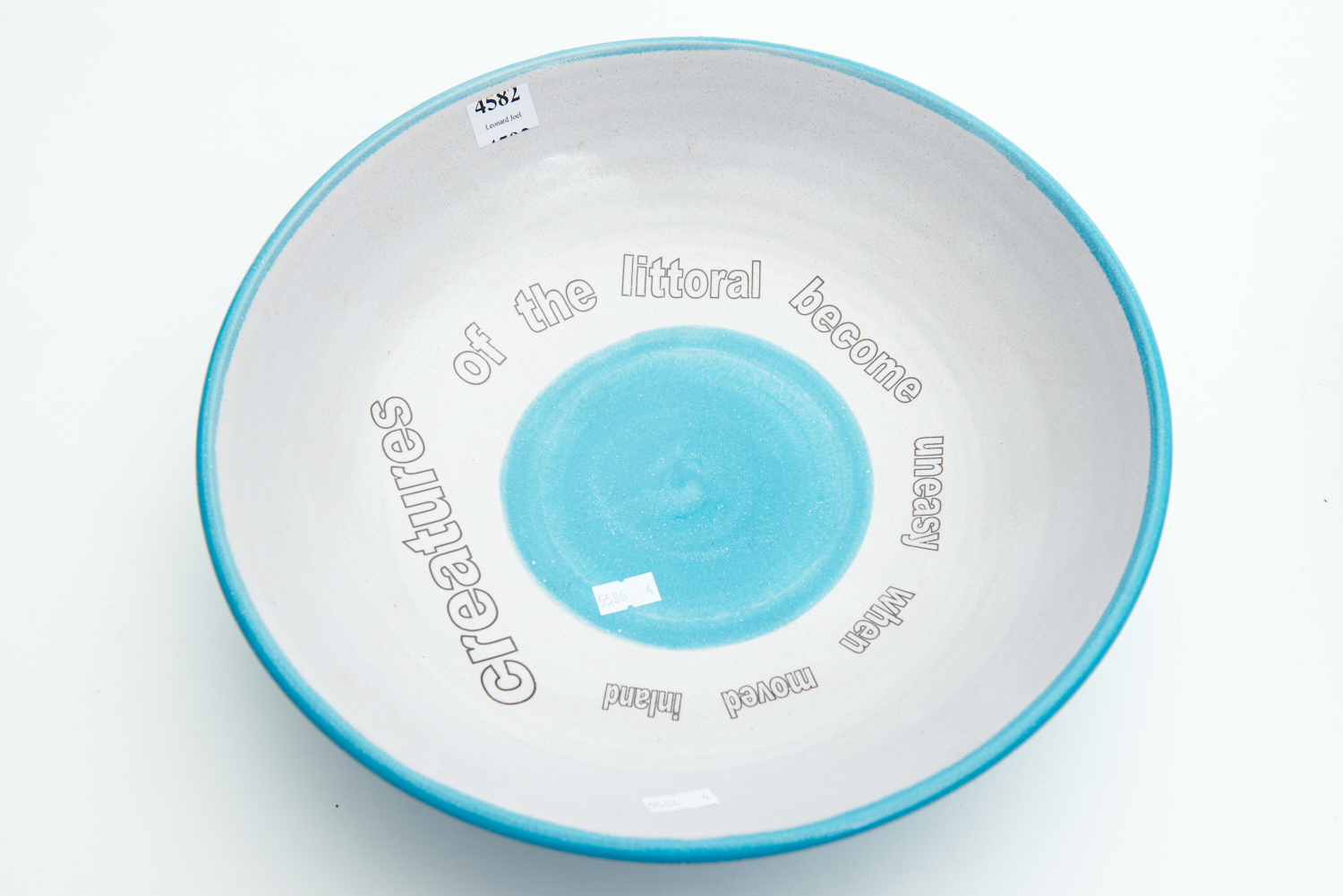 A LARGE BLUE AND WHITE BOWL THROWN BY CHRISTOPHER SANDERS 2007, DECORATED BY CHRIS BYRNE RMIT DIA.32CM, LEONARD JOEL LOCAL DELIVERY SIZE: SMALL