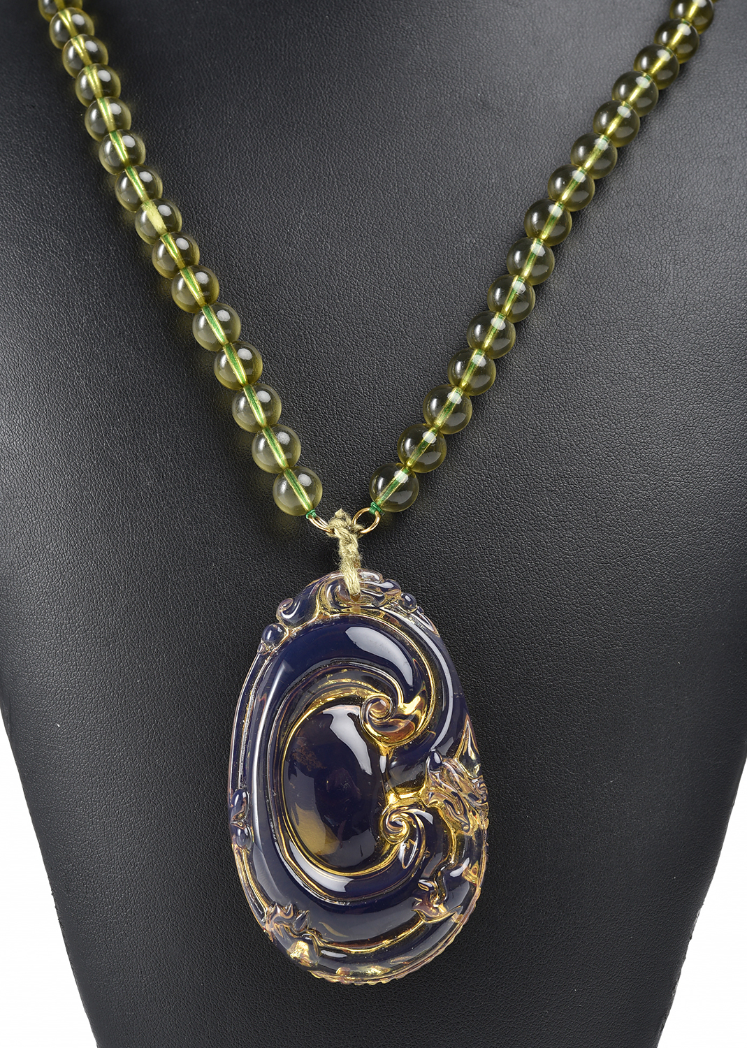 A PENDANT AND BEAD NECKLACE, PENDANT LENGTH 6.5CM