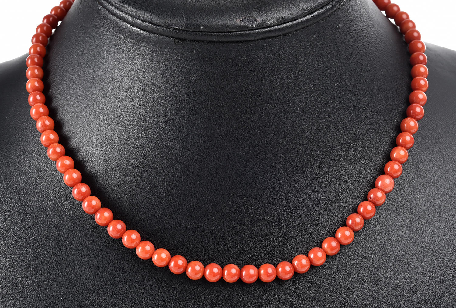 A STRAND OF DYED CORAL BEADS MEASURING 8.80MM, TOTAL LENGTH 42CMS