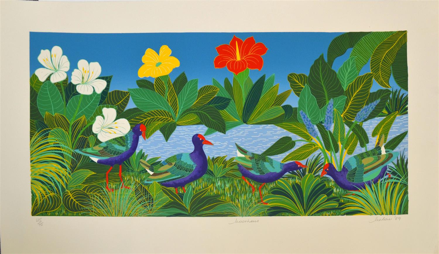 MILAN TODD, MOORHENS 1990, SCREENPRINT ED. 45/75, 45 X 91CM CONDITION: VERY GOOD, LEONARD JOEL DELIVERY SIZE: SMALL