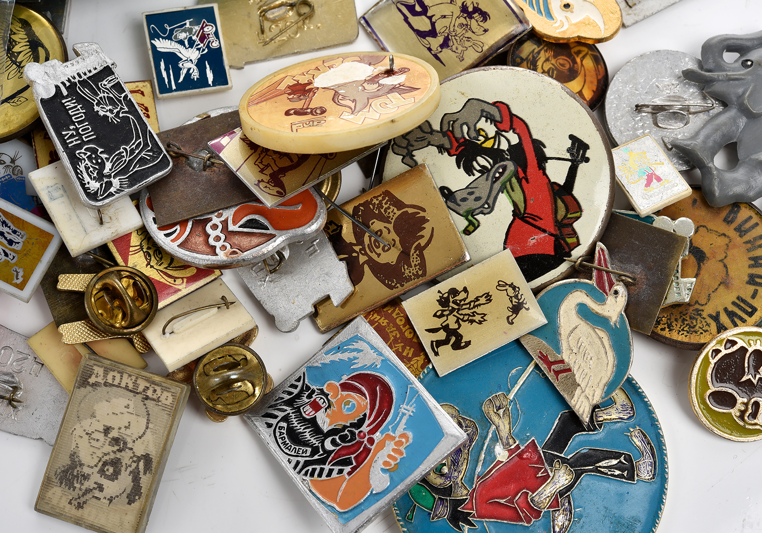 A COLLECTION OF VINTAGE PINS AND BADGES, MOSTLY FROM RUSSIA AND USSR