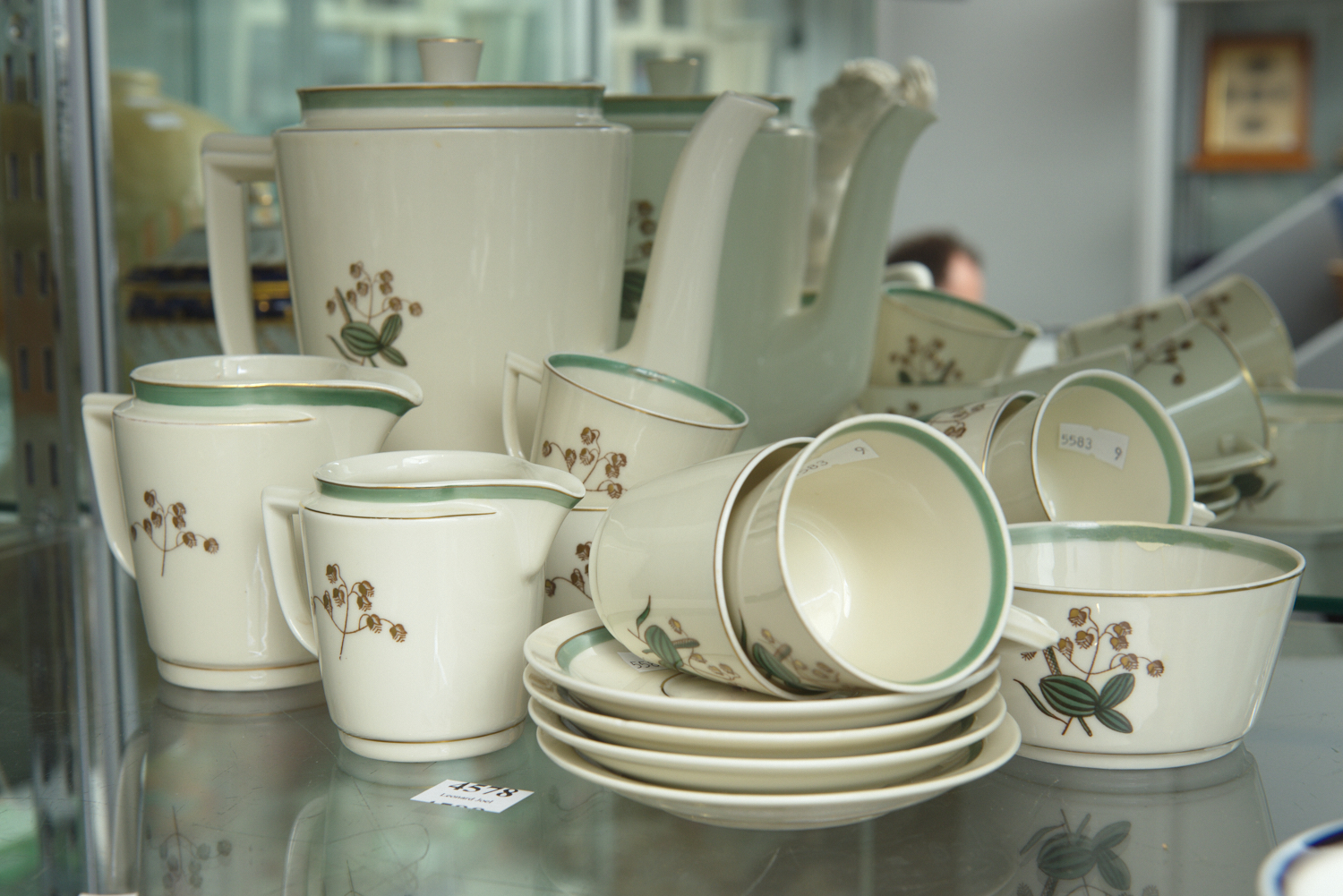 A ROYAL COPENHAGEN COFFEE SET IN THE QUAKING GRASS PATTERN (A/F)