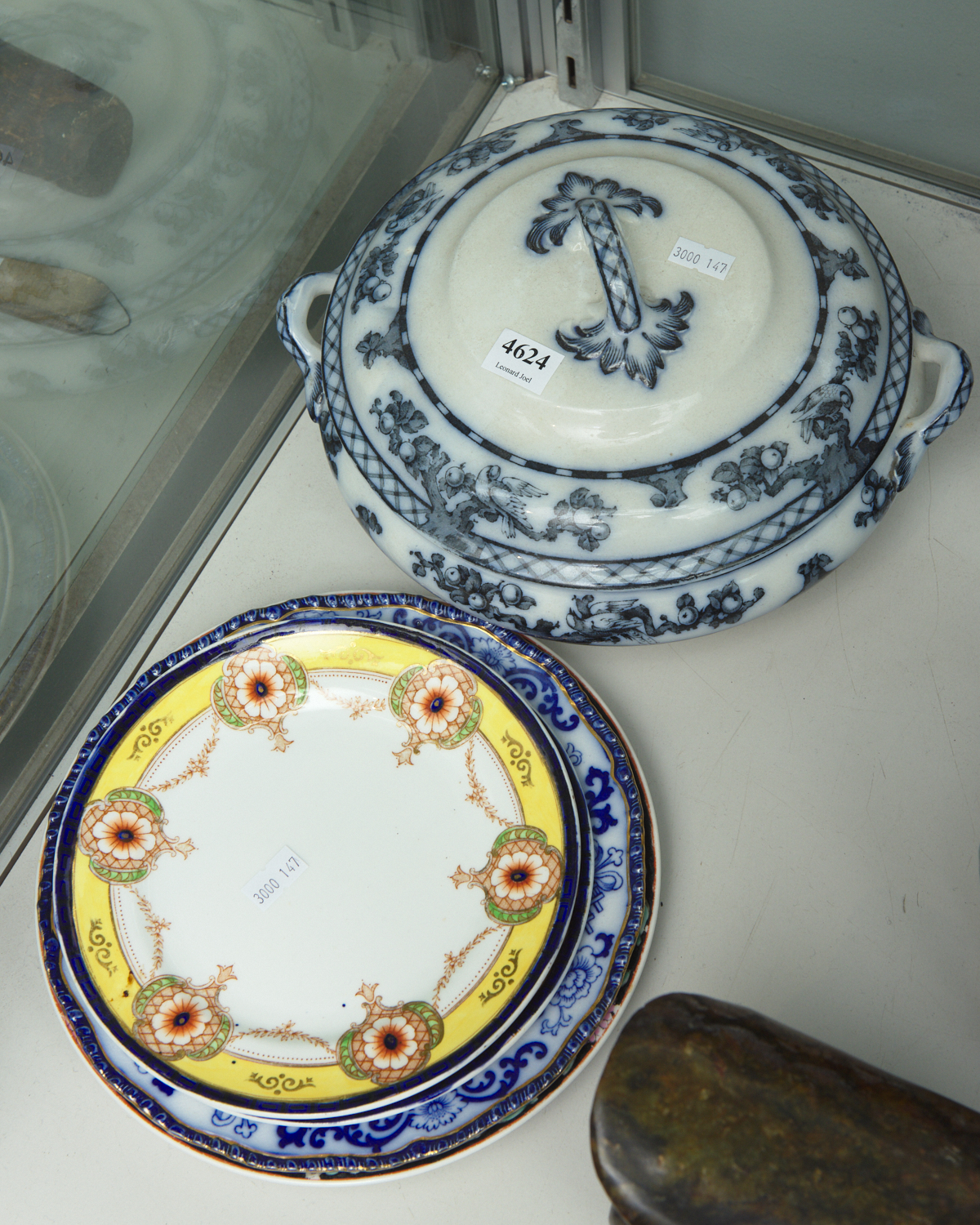 A LOSOL WARE TUREEN TOGETHER WITH FOUR PLATES