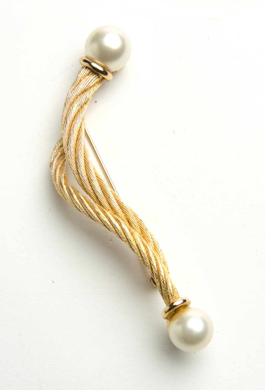 Of rope twist design, set with a faux pearl at each end, in gilt metal, length 9cm.