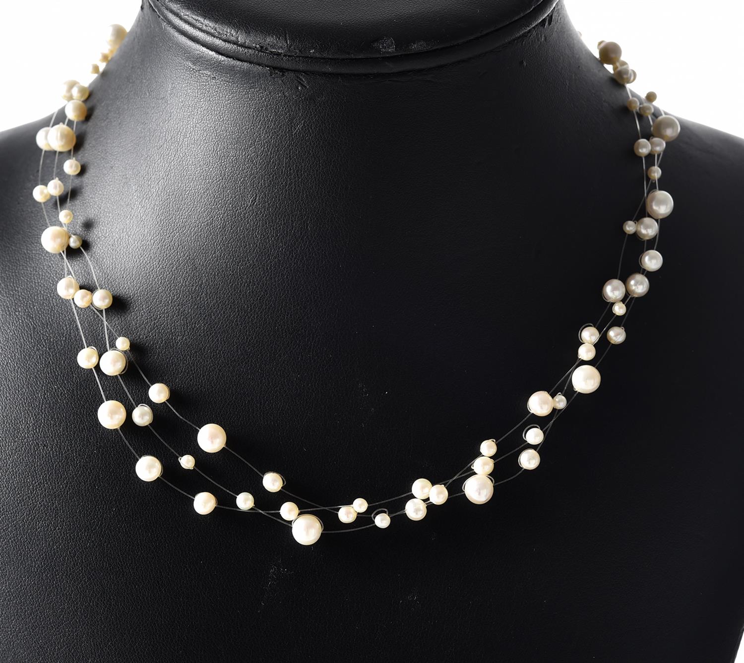 A MULTI-STRAND NECKLACE SET WITH FLOATING PEARLS, CLASP IN SILVER, LENGTH 48CM