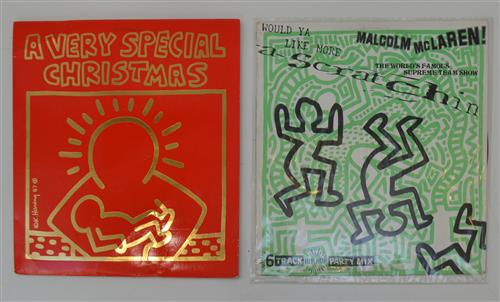A SELECTION OF RECORDS WITH COVER ART BY KEITH HARING (7), AND SEEN AND DUSTER (1)