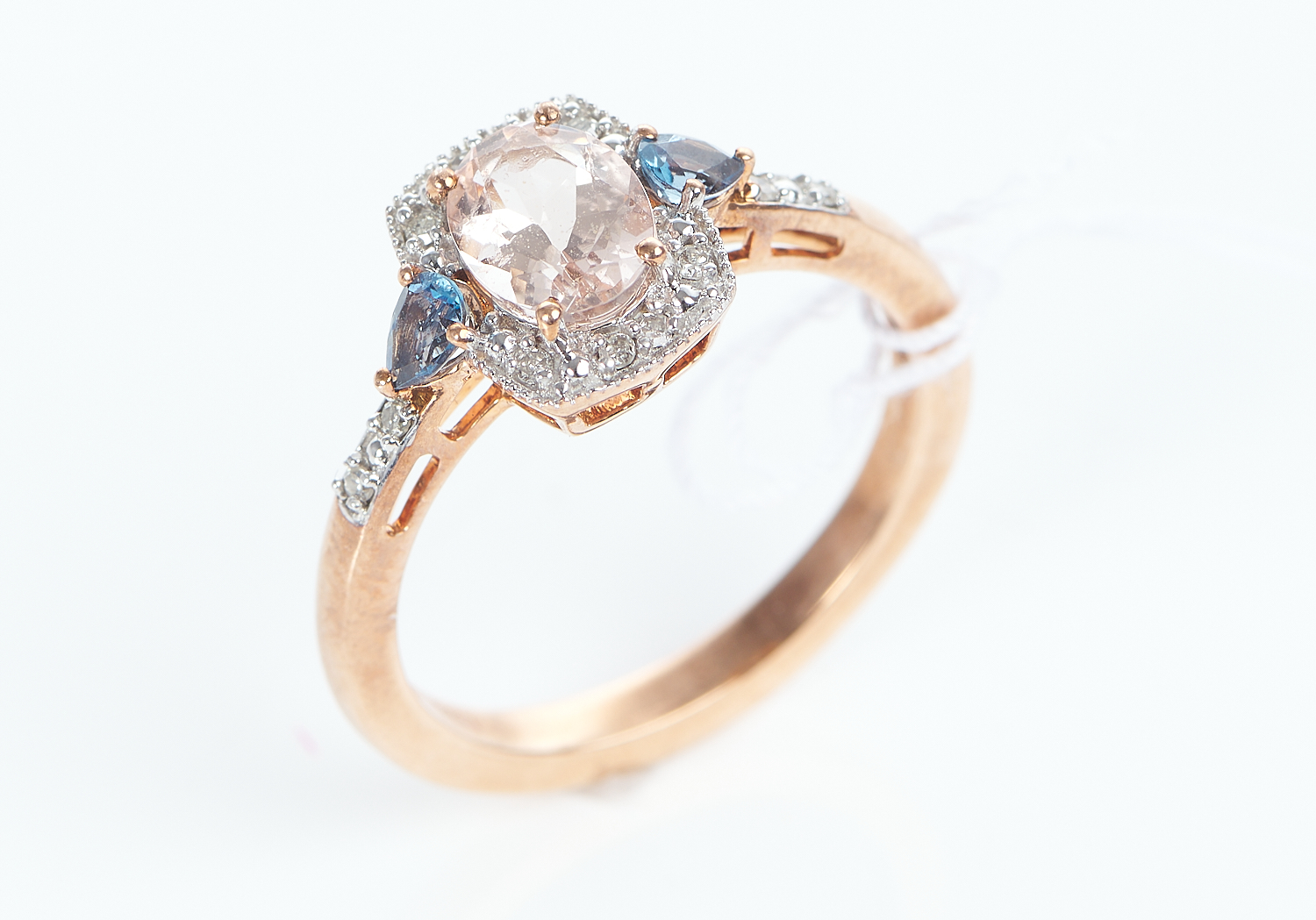 A MORGANITE AND DIAMOND RING IN 9CT ROSE GOLD, SIZE S-T, 4.3GMS