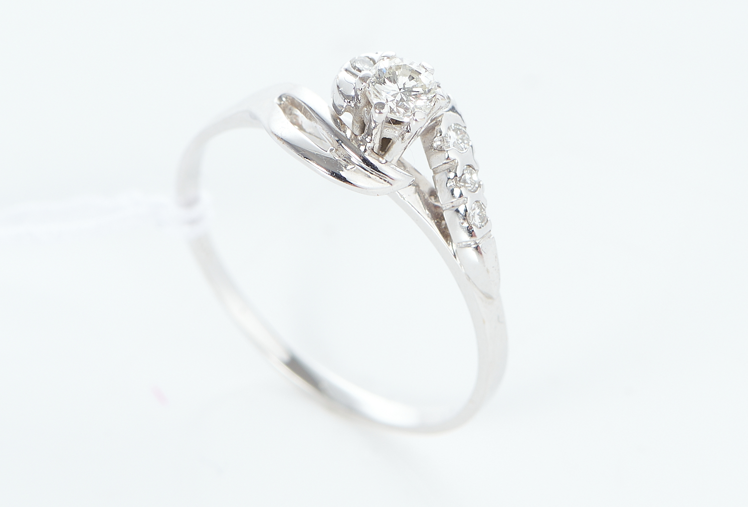 A DIAMOND DRESS RING IN 14CT WHITE GOLD, TOTAL DIAMOND ESTIMATED 0.26CT, SIZE O, 2.2GMS