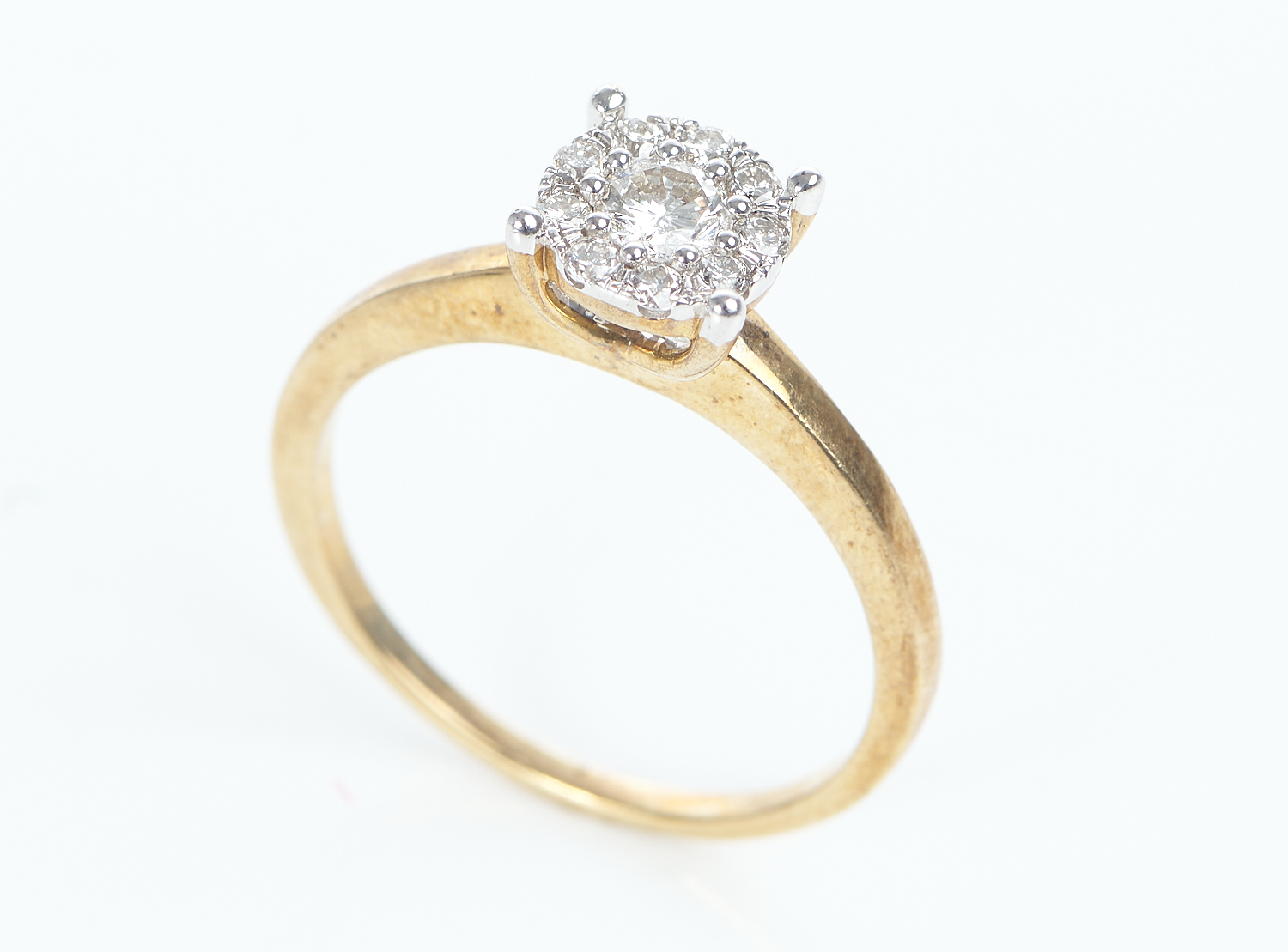 A DIAMOND SET CLUSTER RING, TOTALLING APPROXIMATELY 0.58CT, IN 9CT GOLD, SIZE T-U, 3.9GMS