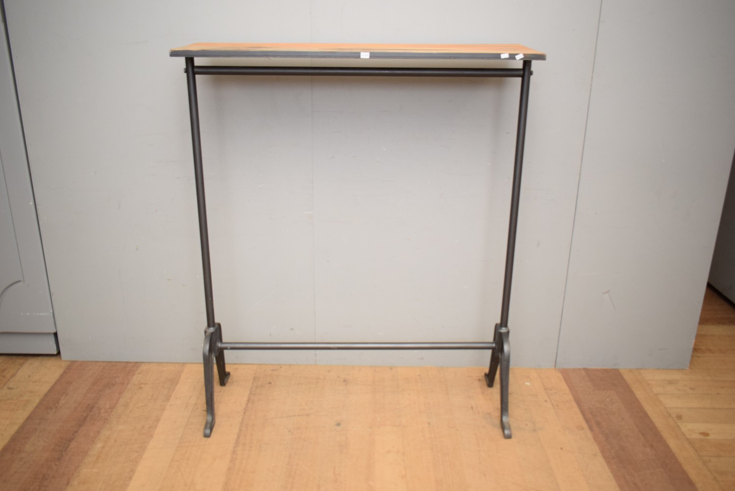 AN INDUSTRIAL METAL AND TIMBER CLOTHES RACK (A/F) (144H x 120W x 40D CM) (LEONARD JOEL DELIVERY SIZE: LARGE)