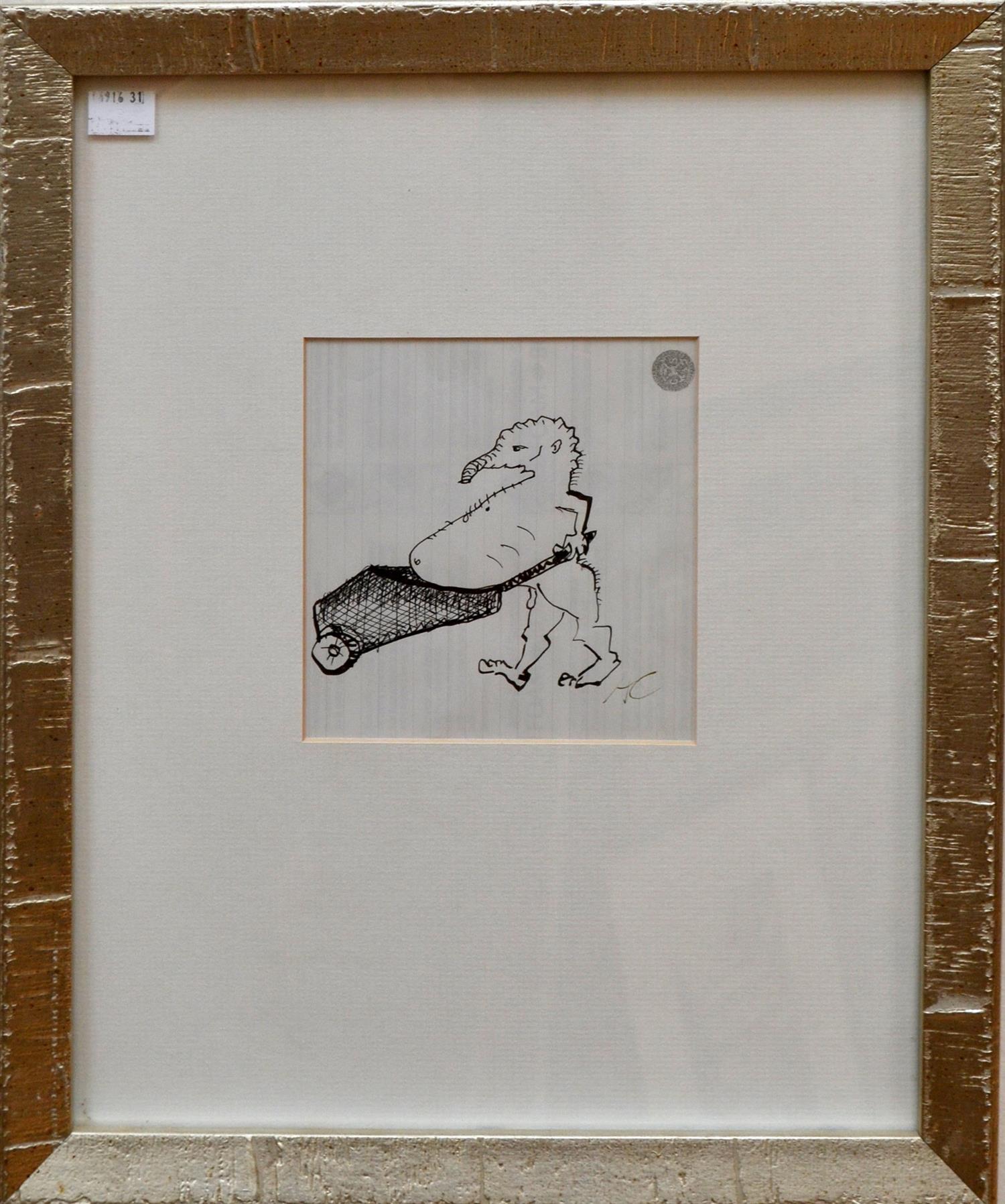 ADAM CULLEN, UNTITLED CREATURE, INK AND TEXTA ON FOUND PAPER, 15 X 13.5C, FRAME SIZE: 43 X 34CM, CONDITION: VERY GOOD, NO ISSUES, LEONARD JOEL DELIVERY SIZE: SMALL