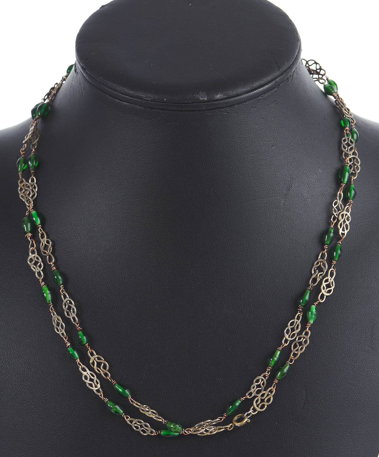 AN EMERALD AND DIAMOND NECKLACE, THE EMERALDS TOTALLING 7.10cts, AND DIAMONDS TOTALLING 6.90cts, IN 18ct WHITE GOLD, TOTAL LENGTH 44...