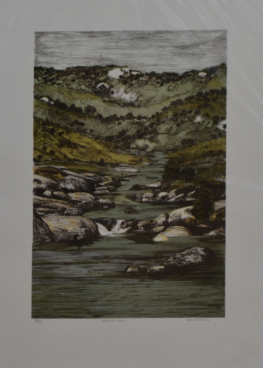 JOHN CALDWELL, SPRING CREEK, SCREENPRINT 28/40, 66 X 45CM SHEET SIZE. CONDITION: THIS WORK IS IN VERY GOOD CONDITION, UNFRAMED BUT BACKED AND WRAPPED FOR PROTECTION. LEONARD JOEL DELIVERY SIZE: SMALL