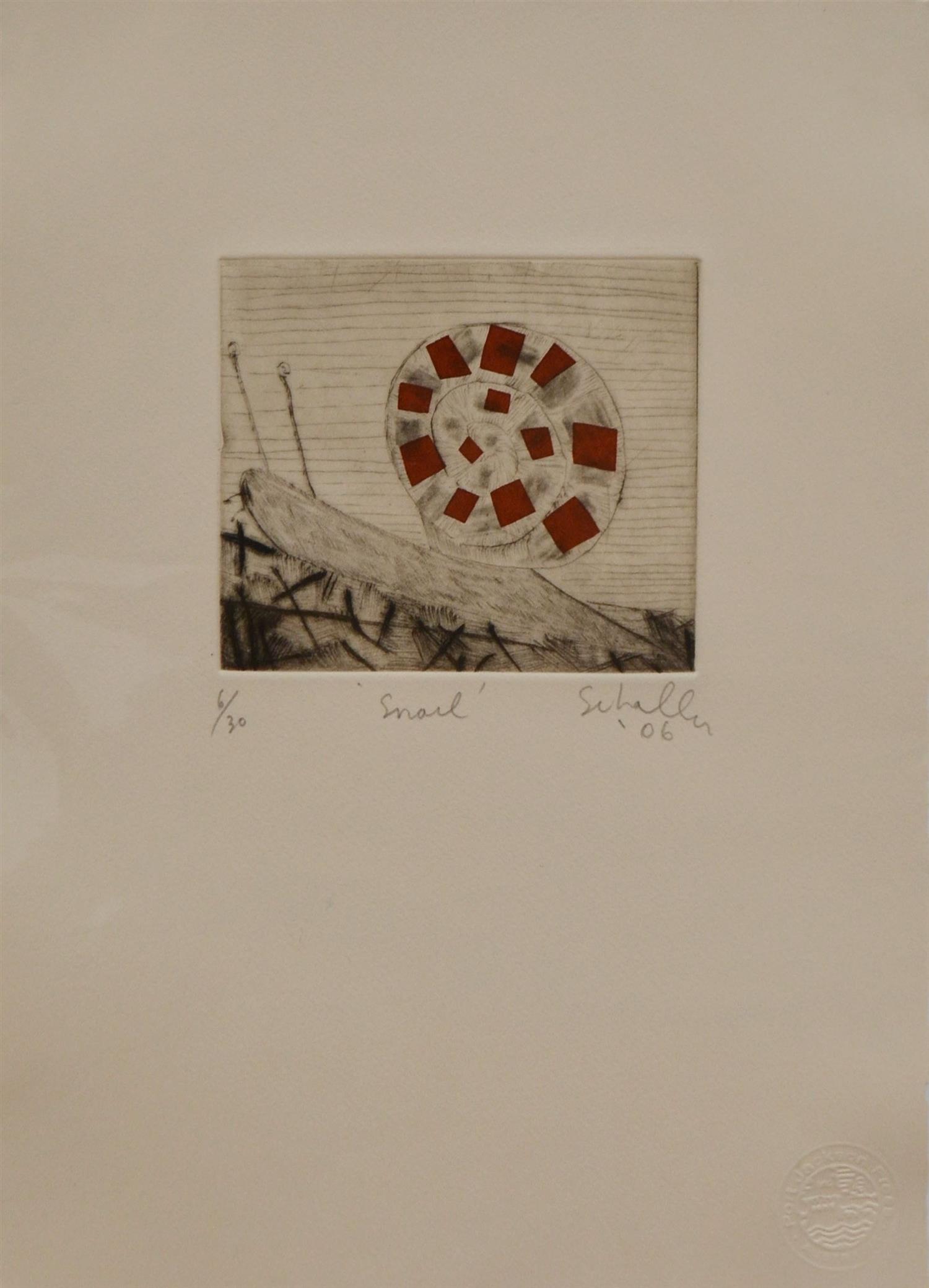 MARK SCHALLER, SNAIL 2006, ETCHING 6/30, 38 X 28CM SHEET SIZE. CONDITION: THIS WORK IS IN VERY GOOD CONDITION, UNFRAMED BUT BACKED AND WRAPPED FOR PROTECTION, LEONARD JOEL DELIVERY SIZE: SMALL