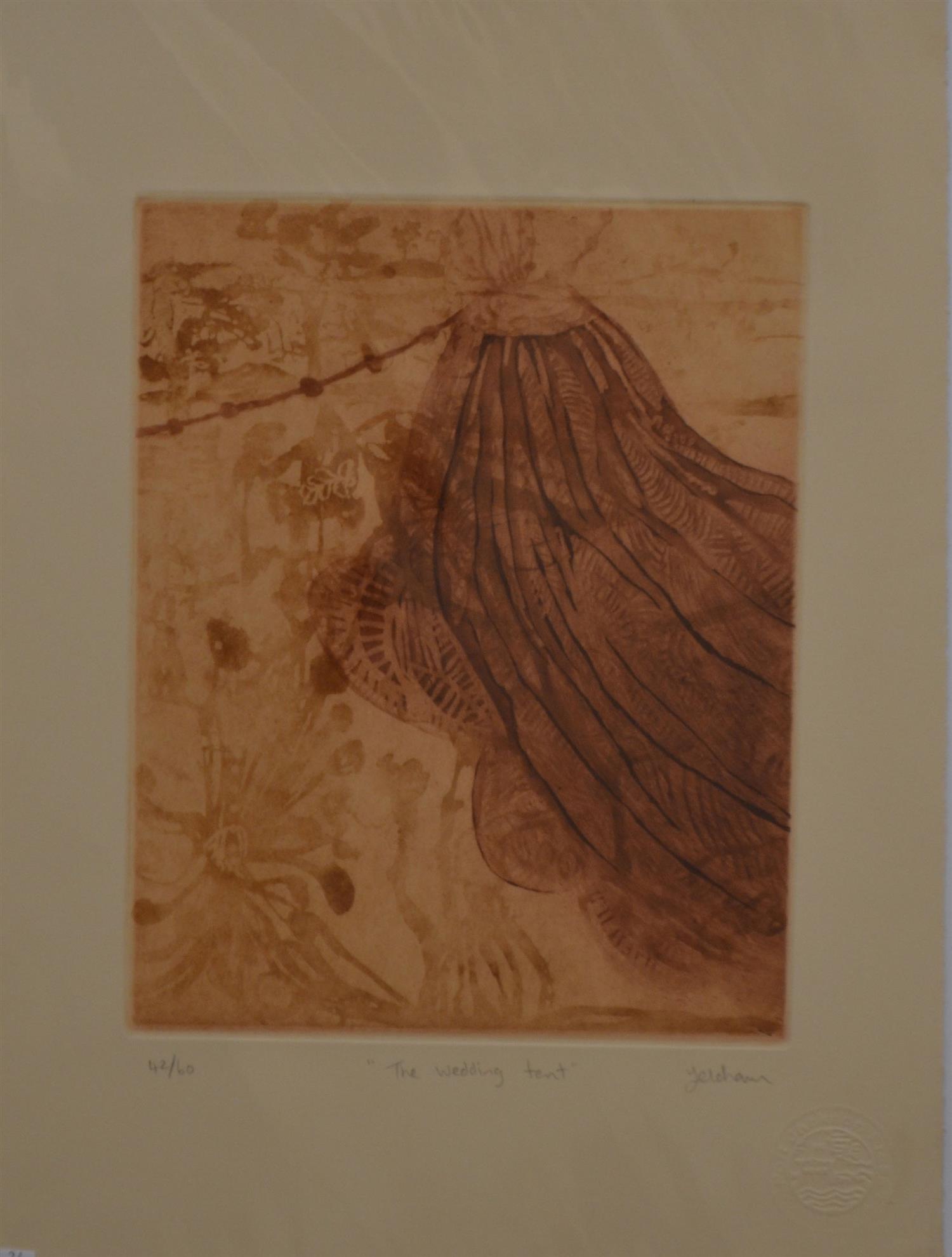 JOSH YELDHAM, THE WEDDING TENT, ETCHING 42/60, 37 X 28CM SHEET SIZE. CONDITION: THIS WORK IS IN VERY GOOD CONDITION, UNFRAMED BUT BACKED AND WRAPPED FOR PROTECTION, LEONARD JOEL DELIVERY SIZE: SMALL