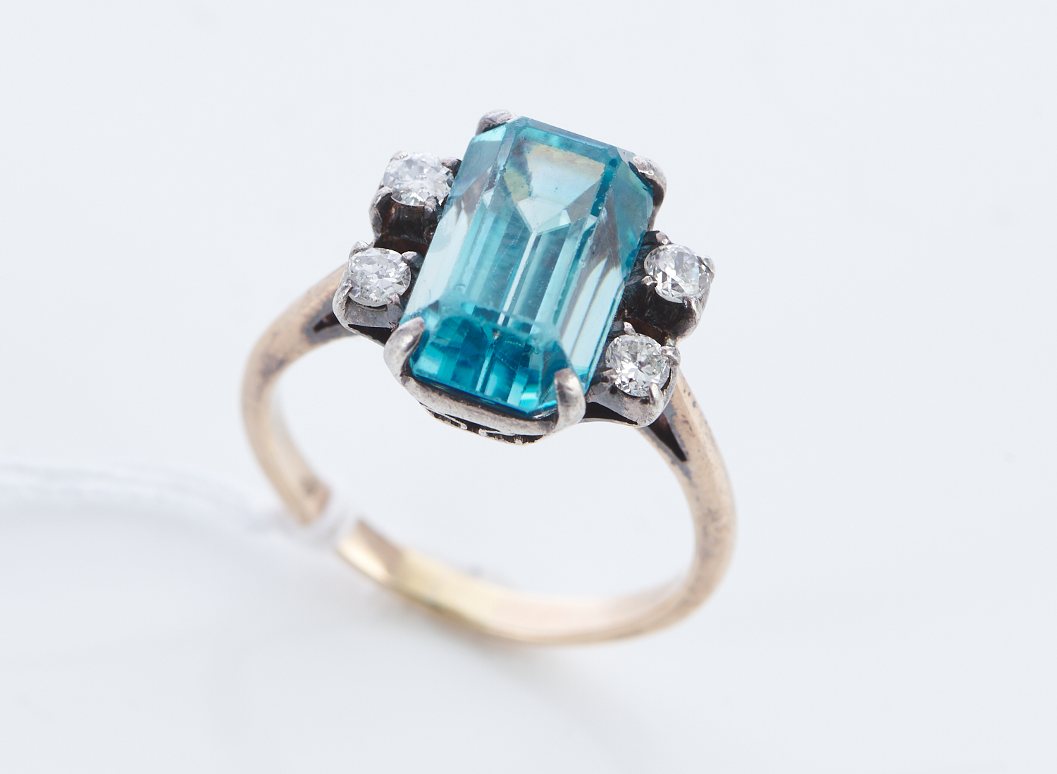 AN EMERALD AND DIAMOND RING, THE EMERALD CUT EMERALD WEIGHING 5.89CTS, WITH FURTHER DIAMOND DETAIL TOTALLIN 0.28CT, IN 18CT TWO TONE...
