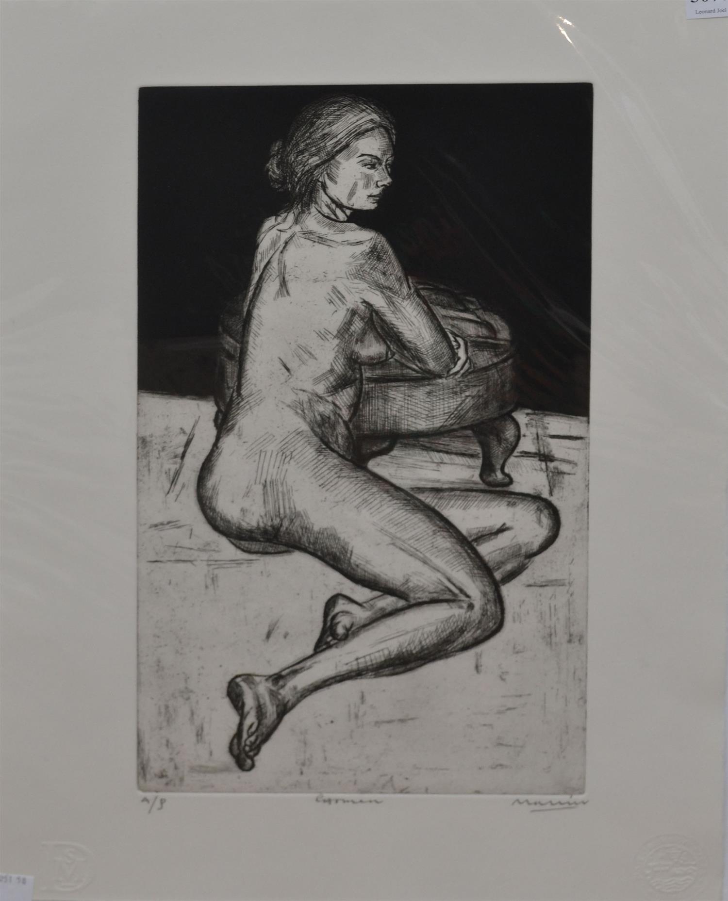 JEFF MAKIN, CARMEN, ETCHING A/P, 48 X 35CM SHEET SIZE. CONDITION: THIS WORK IS IN VERY GOOD CONDITION, UNFRAMED BUT BACKED AND WRAPPED FOR PROTECTION, LEONARD JOEL DELIVERY SIZE: SMALL
