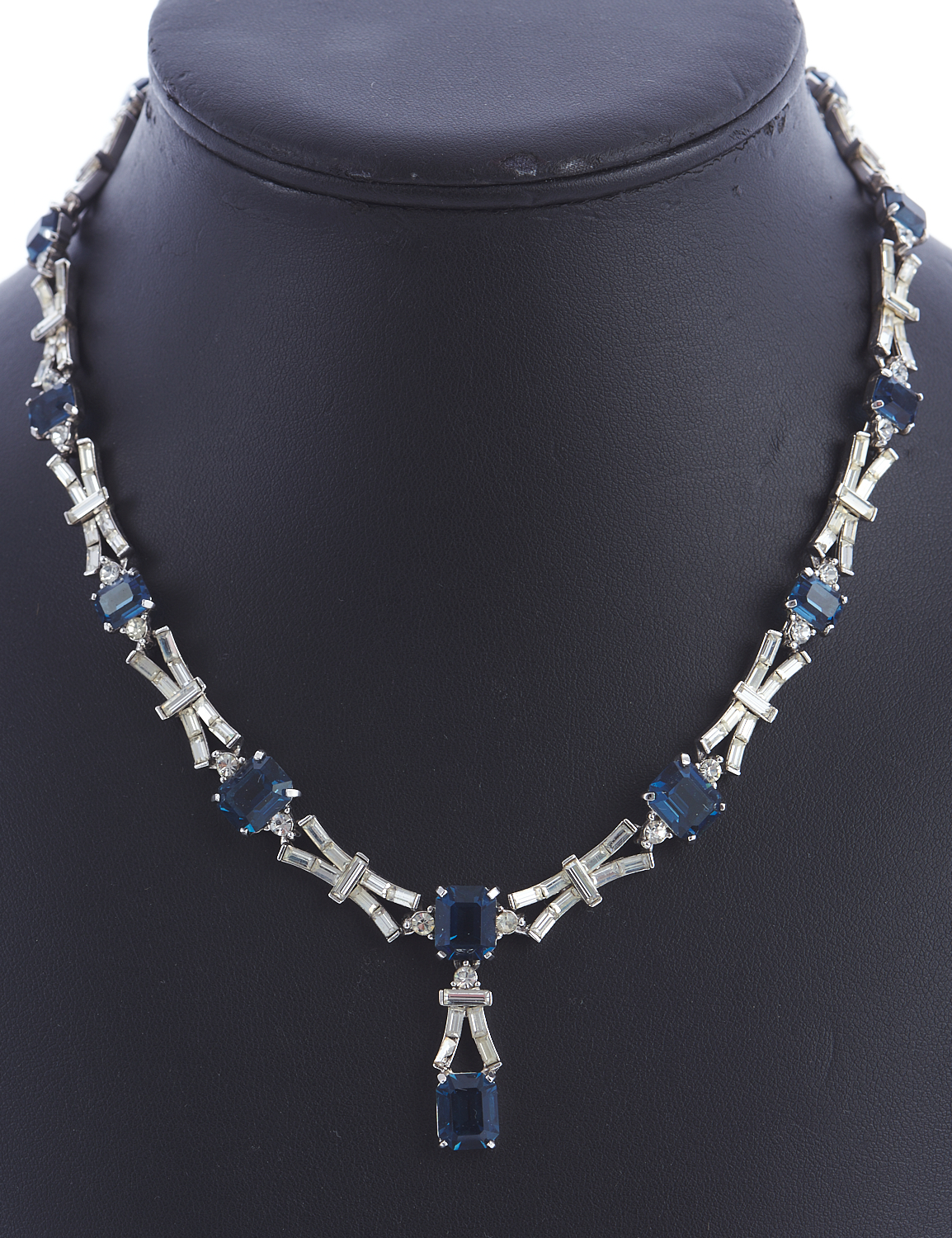 A VINTAGE BLUE AND WHITE PASTE SET NECKLACE, LENGTH 44CM, BOXED