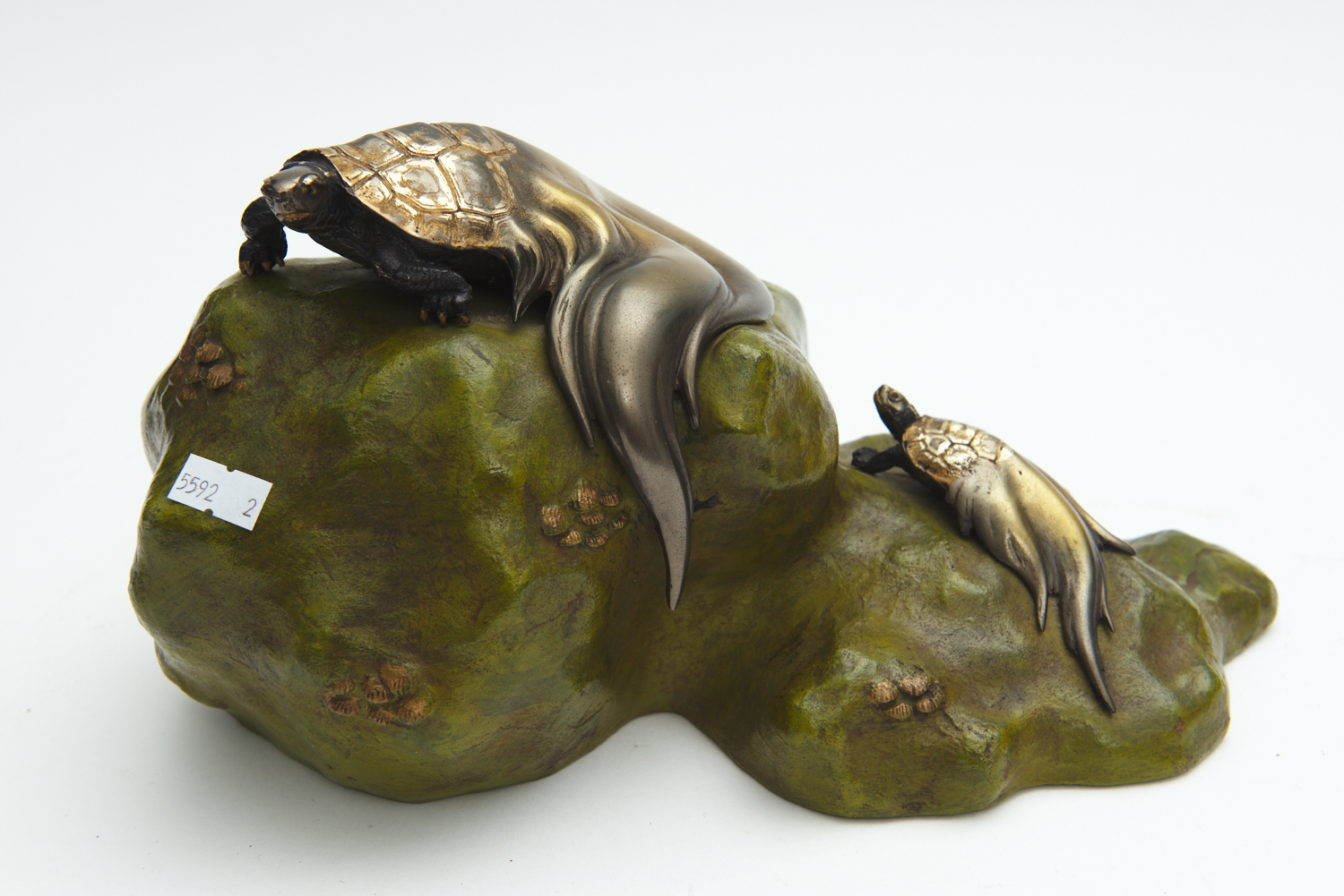 A SIGNED JAPANESE BRONZE FIGURE GROUP OF TWO TURTLES ON A ROCK L.36CM, LEONARD JOEL DELIVERY SIZE: MEDIUM