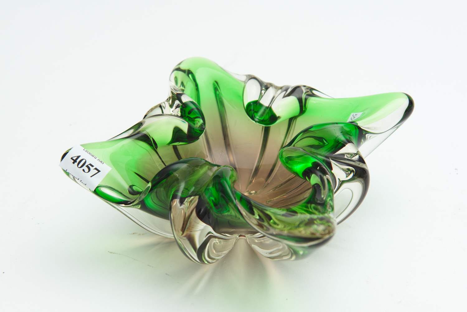 A MURANO GREEN ORGANIC FORM BOWL DIA.23CM, LEONARD JOEL DELIVERY SIZE: SMALL