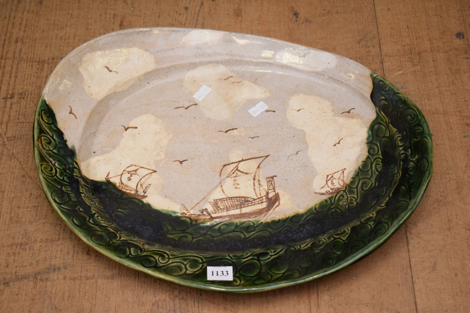 A JAPANESE HAND PAINTED CERAMIC PLATE (42W x 33D CM) (LEONARD JOEL DELIVERY SIZE: SMALL)