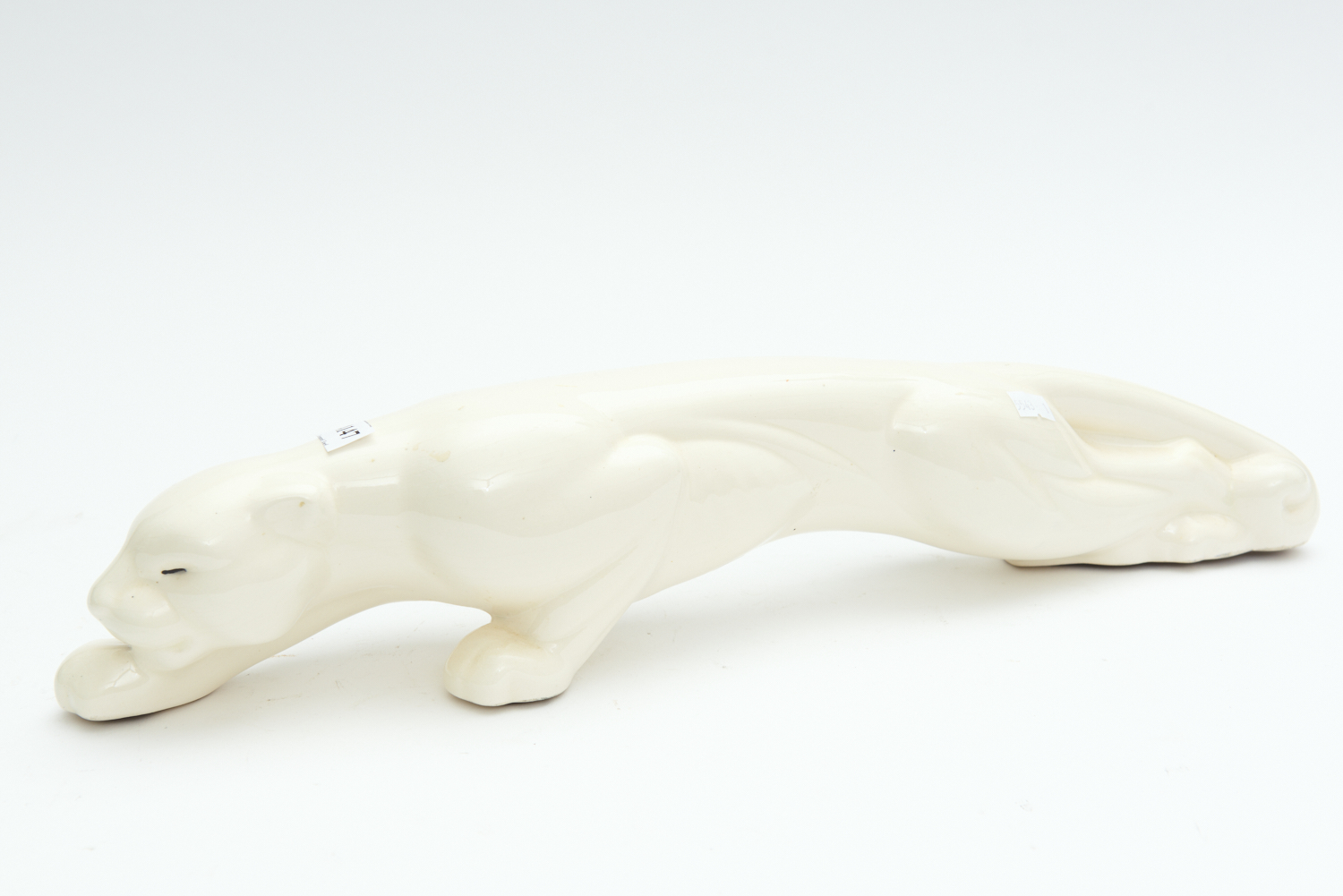 A MID CENTURY CERAMIC PANTHER FIGURINE, 48 CM LONG, LEONARD JOEL DELIVERY SIZE: SMALL