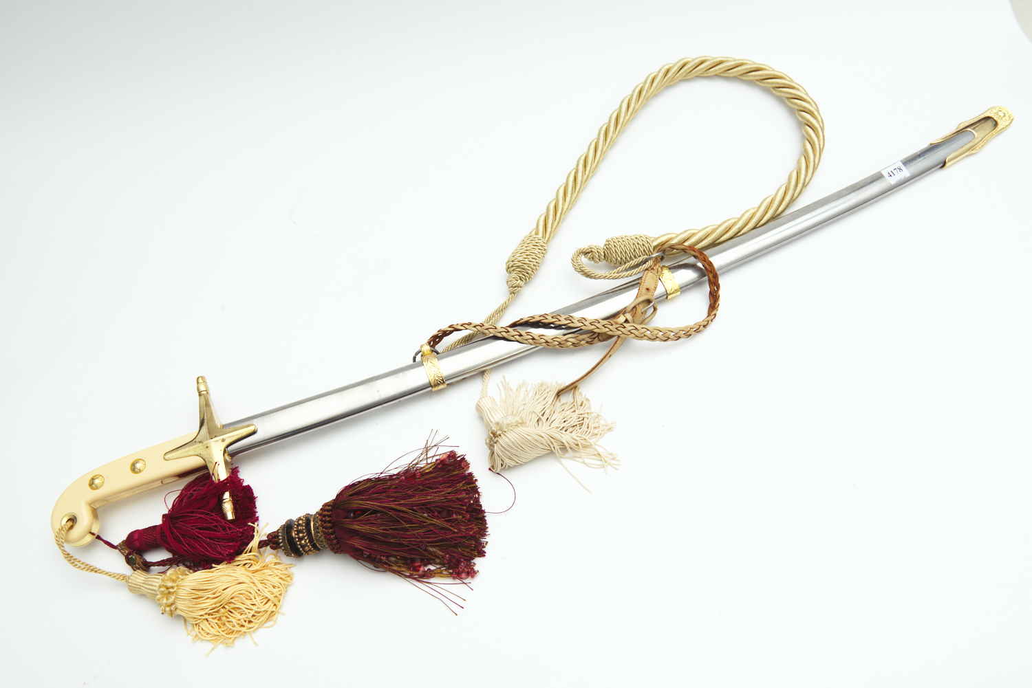 A MAMELUKE SWORD WITH SCABBARD AND TASSELS, 97 CM LONG - PLEASE NOTE: AN EDGED WEAPONS LICENSE IS REQUIRED TO PURCHASE THIS ITEM, LEONARD JOEL DELIVERY SIZE: SMALL