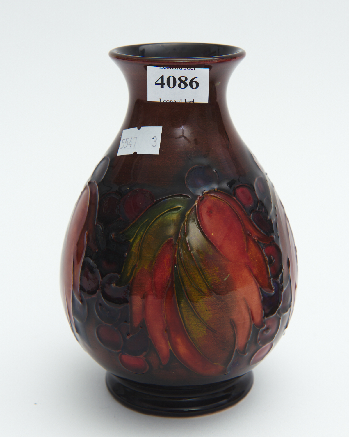 A WILLIAM MOORCROFT 'LEAF AND BERRIES' PATTERN VASE H.15CM, LEONARD JOEL DELIVERY SIZE: SMALL
