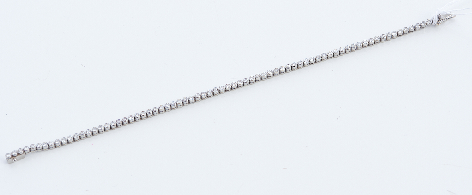 A FANCY COLOURED DIAMOND BRACELET - Of articulated tubular form, set with round brilliant cut diamonds in varying colours of pink, y...
