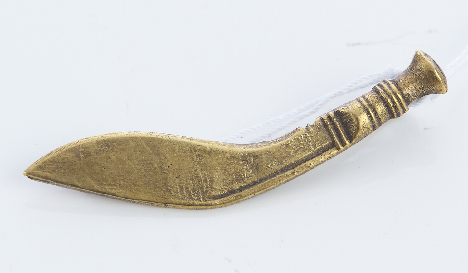 A BRONZE CLIP FEATURING A NEPALESE GURKHA KNIFE, TOTAL LENGTH 45MM