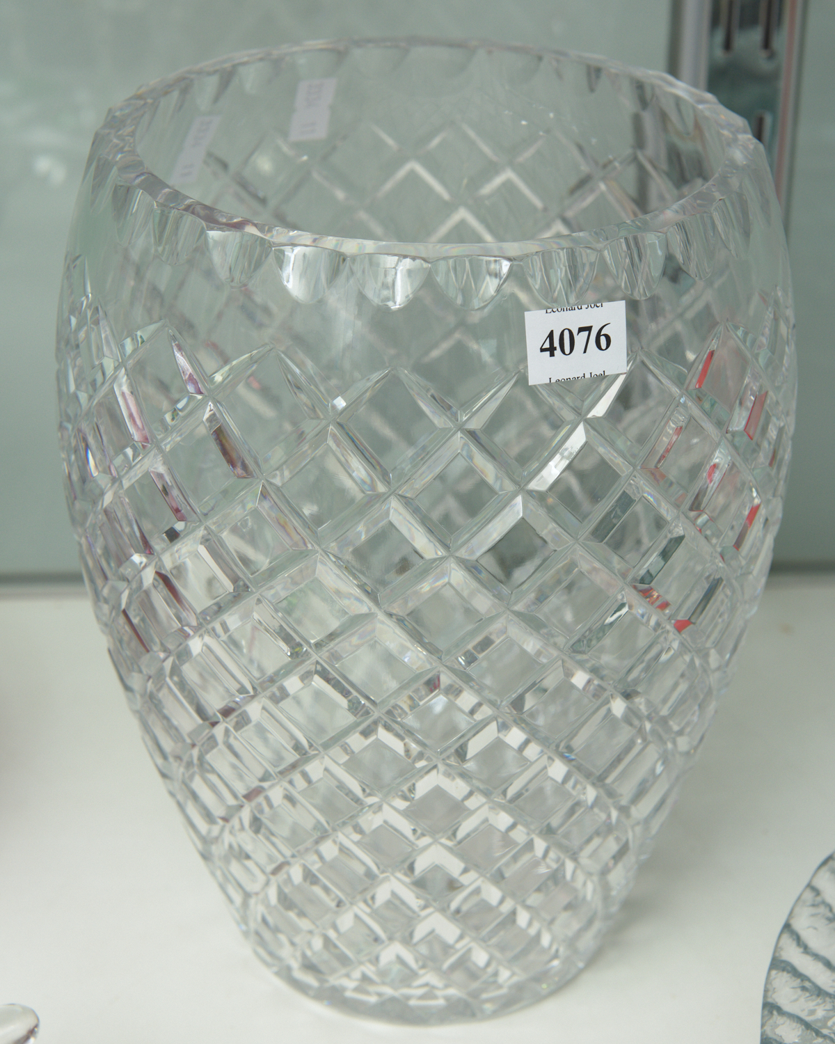 A HEAVY CUT CRYSTAL VASE H.26CM, LEONARD JOEL DELIVERY SIZE: SMALL
