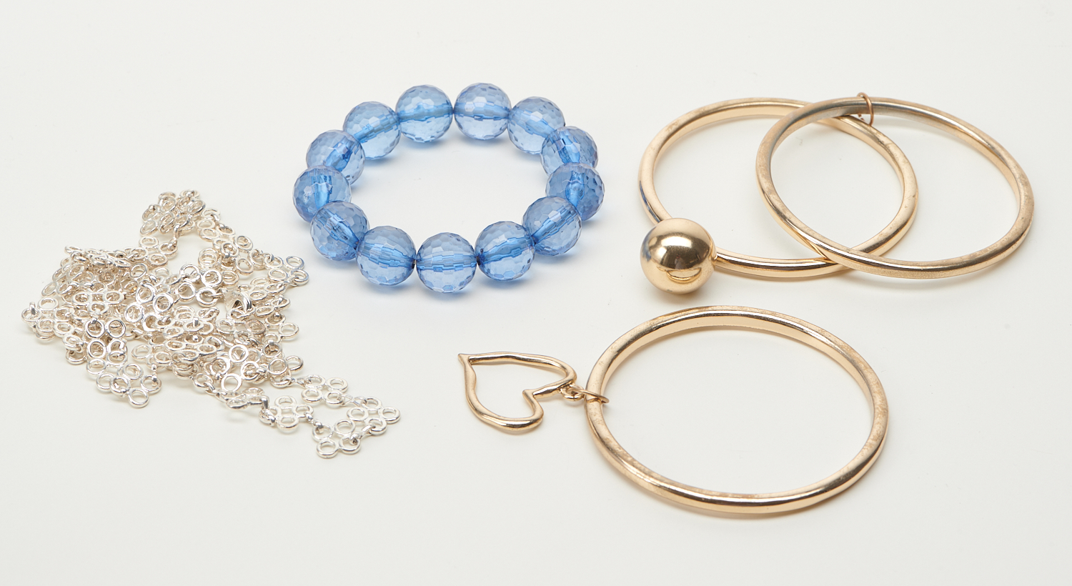 A BAG OF ASSORTED COSTUME JEWELLERY INCLUDING NECKLACES, EARRINGS, BANGLES, AND RINGS, ETC