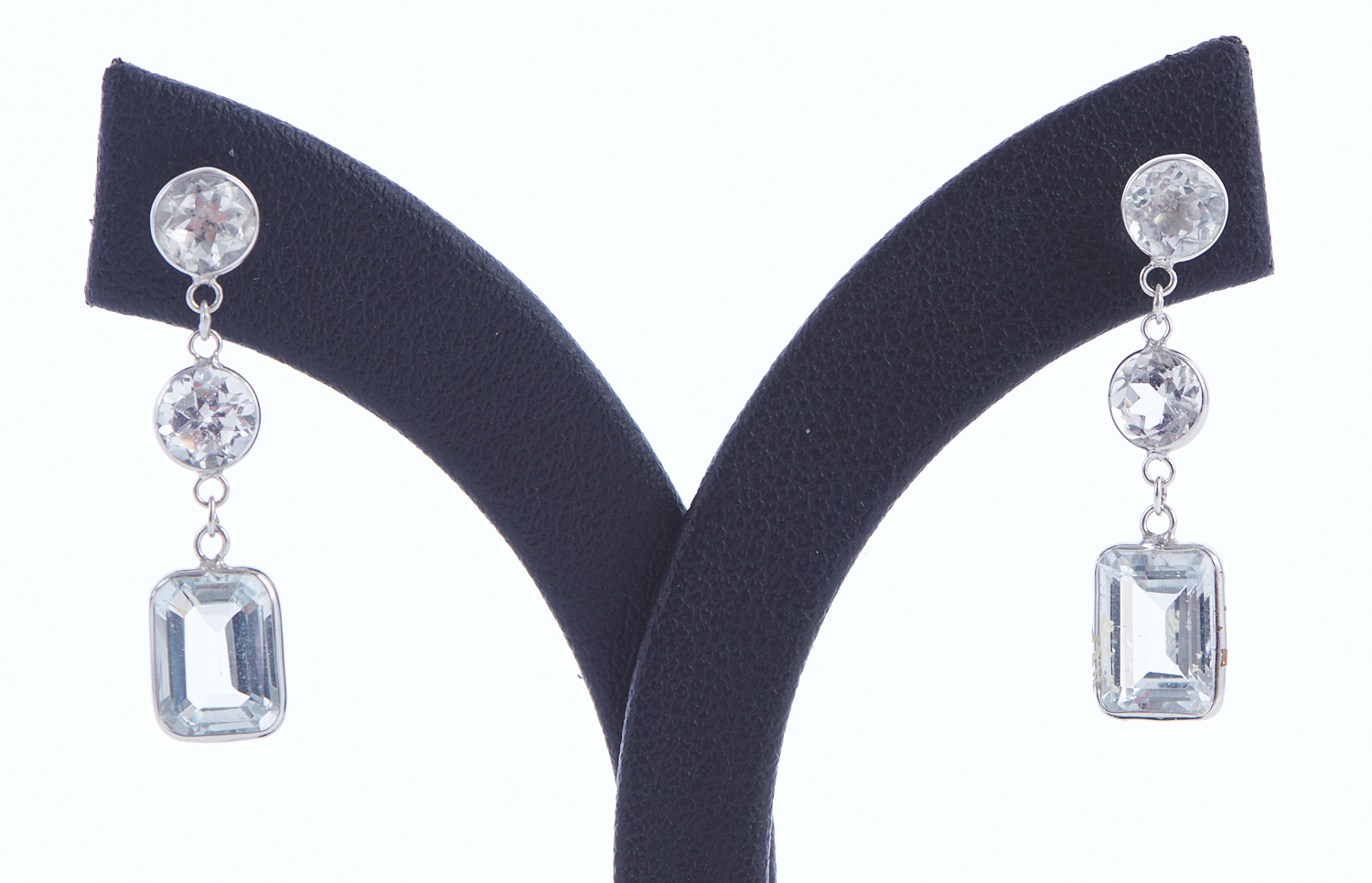 A PAIR OF COLOURLESS TOPAZ DROP EARRINGS IN SILVER