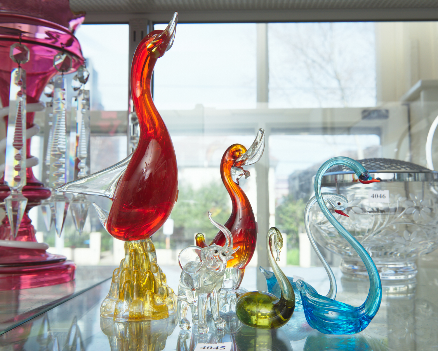 A GROUP OF SIX COLOURED AND CLEAR GLASS ANIMAL FIGURINES, TALLEST H.27CM, LEONARD JOEL DELIVERY SIZE: SMALL