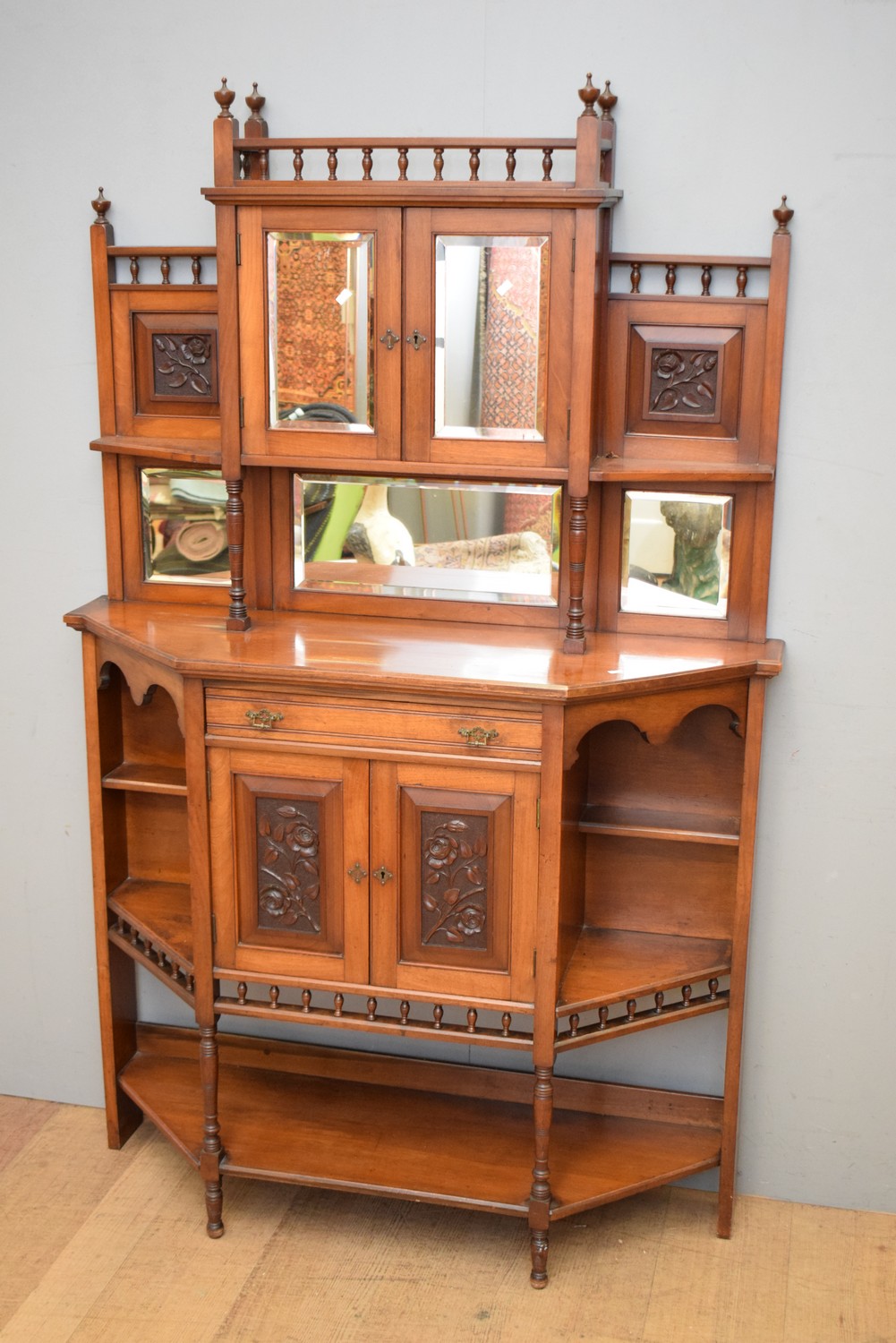 AN EDWARDIAN DOUBLE BODIED MIRRORBACK SIDEBOARD (A/F) (188H x 119W x 41D CM) (LEONARD JOEL DELIVERY SIZE: X- LARGE)