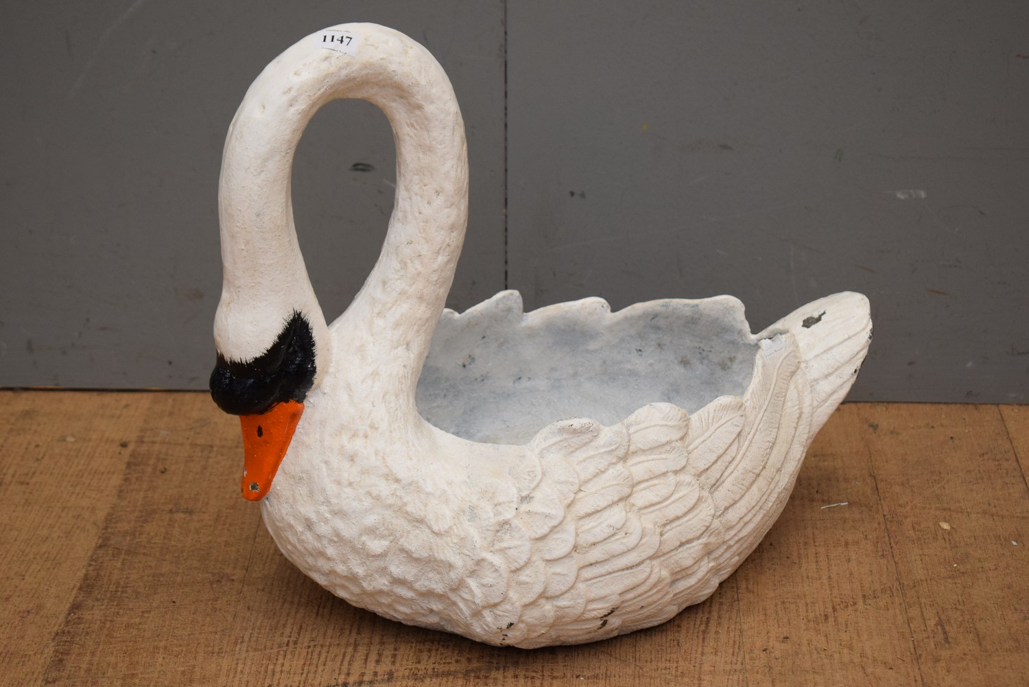 A CAST METAL DECORATIVE SWAN PLANTER (40H CM) (LEONARD JOEL DELIVERY SIZE: LARGE)