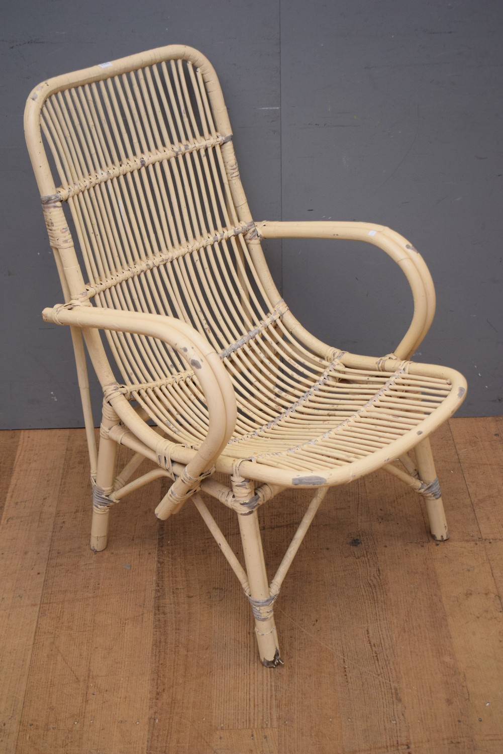 A PAINTED CANE CHAIR (89H x 56W x 74D CM) (LEONARD JOEL DELIVERY SIZE: MEDIUM)