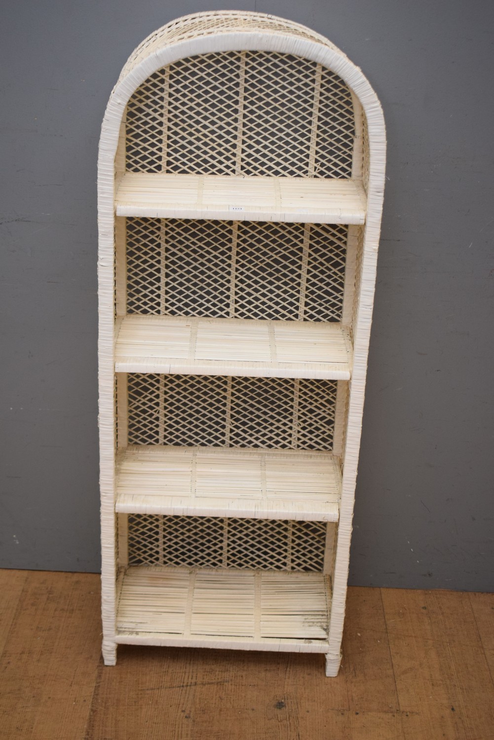 A CANE FOUR TIER BOOKSHELF (A/F) (134H x 52W x 30D CM) (LEONARD JOEL DELIVERY SIZE: LARGE)